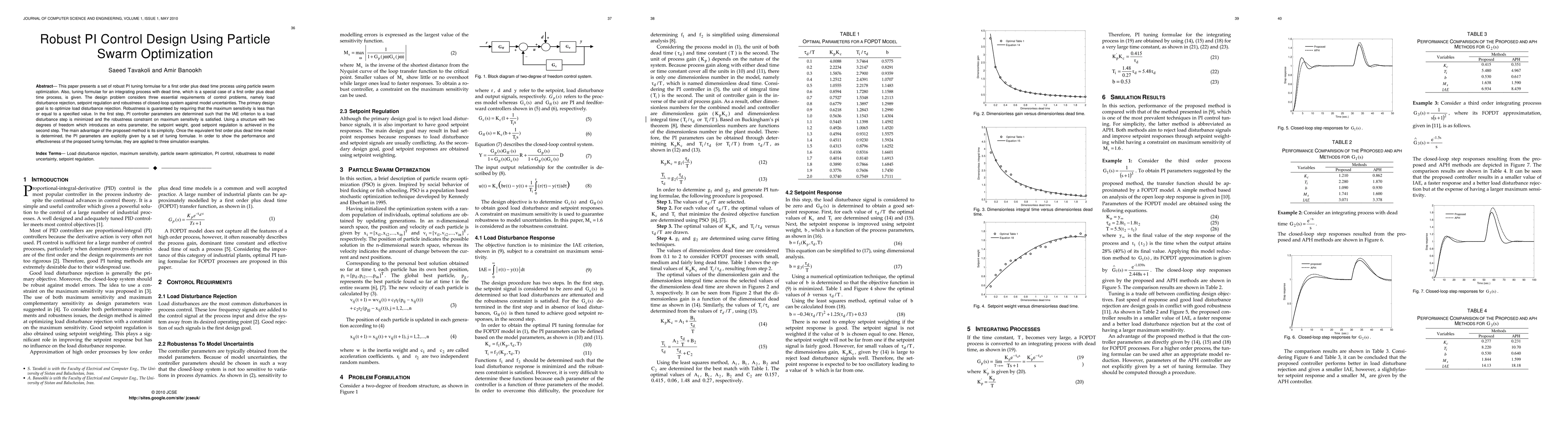 This paper presents a method for robust PI control design using particle swarm optimization, focusing on load disturbance rejection and robustness against model uncertainties.