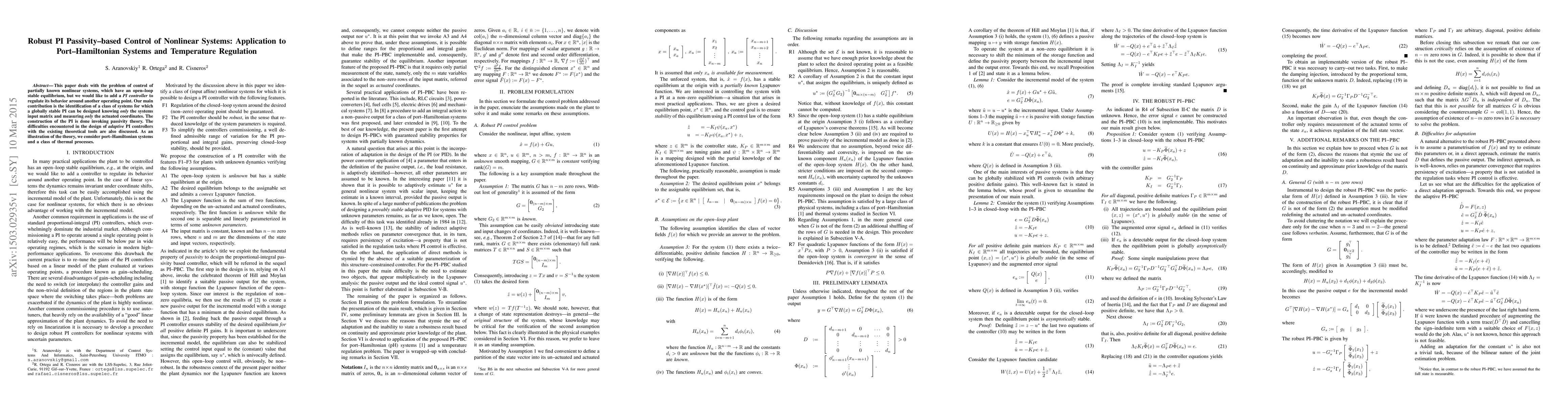 This paper proposes a robust PI passivity-based control method for partially known nonlinear systems, ensuring global stability by leveraging passivity theory. It demonstrates the approach through applications to port-Hamiltonian systems and temperature regulation processes.