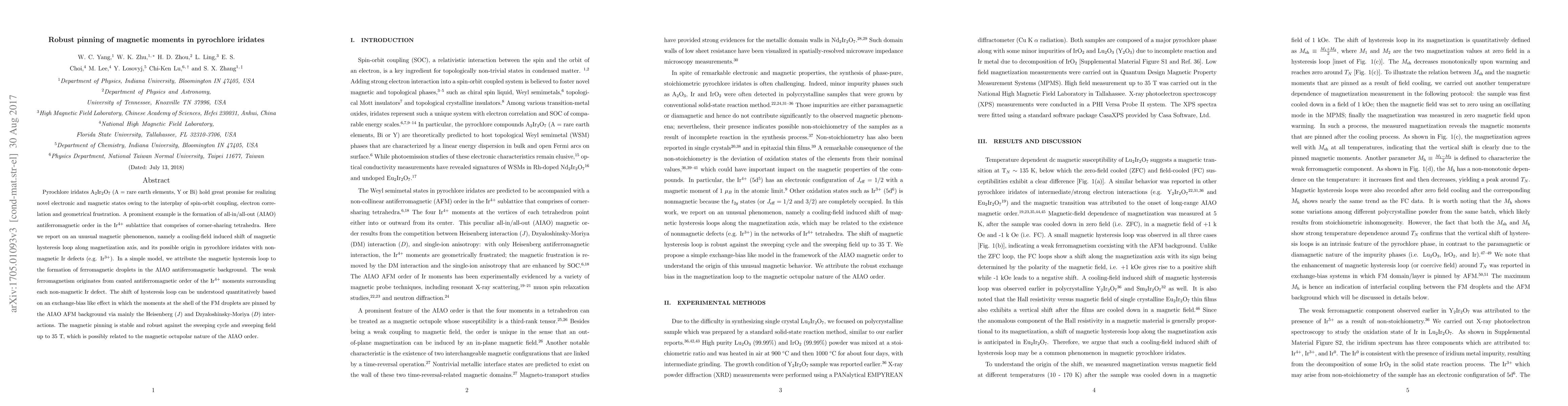 Pyrochlore iridates exhibit a unique cooling-field induced shift in magnetic hysteresis loops due to the formation of ferromagnetic droplets in an all-in/all-out antiferromagnetic background, with magnetic pinning attributed to Heisenberg and Dzyaloshinsky-Moriya interactions. This robust pinning is stable against high magnetic fields, likely linked to the octupolar nature of the antiferromagnetic order.