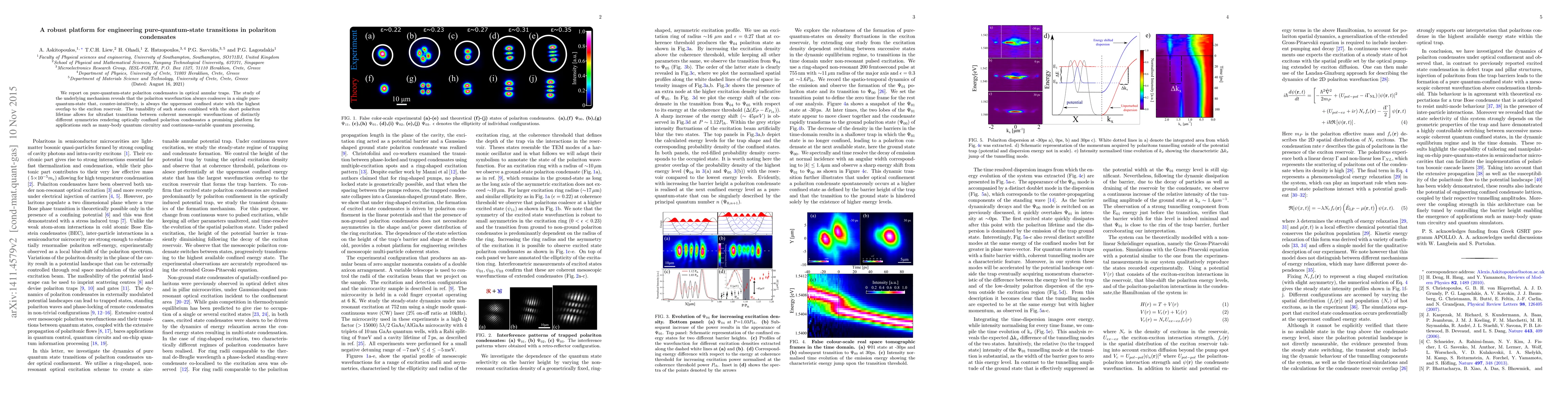 This research presents a robust platform for achieving pure-quantum-state transitions in polariton condensates using optical annular traps, where polaritons coalesce into a single pure state with the highest overlap to the exciton reservoir. The tunability and short lifetime of these states make them ideal for ultrafast transitions and potential applications in quantum circuitry and quantum processing.