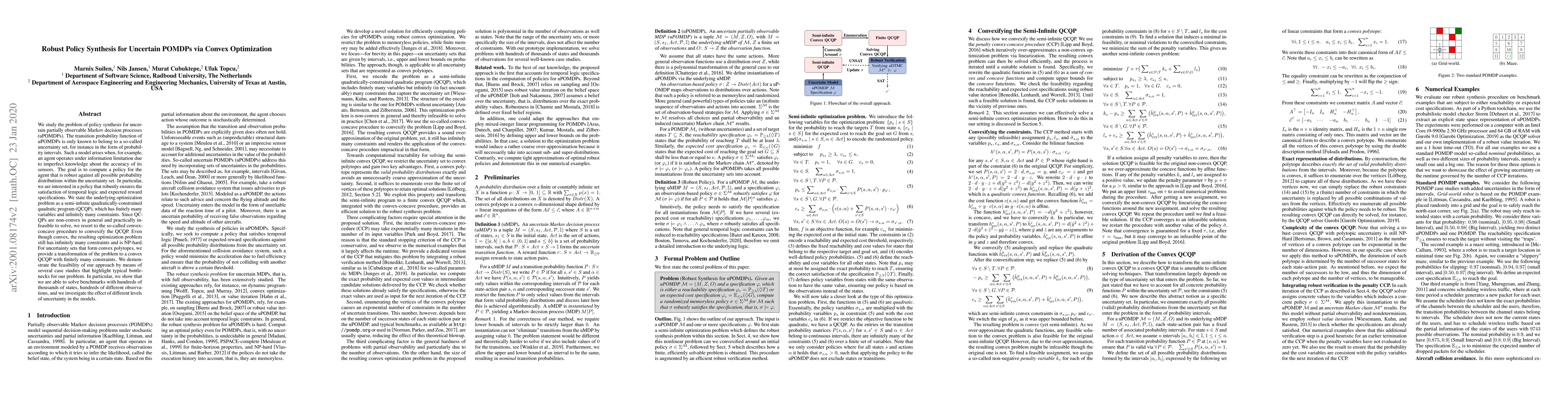 Researchers developed a method to create robust policies for uncertain partially observable Markov decision processes (uPOMDPs) using convex optimization, enabling the satisfaction of temporal logic and reward specifications under varying probability distributions.