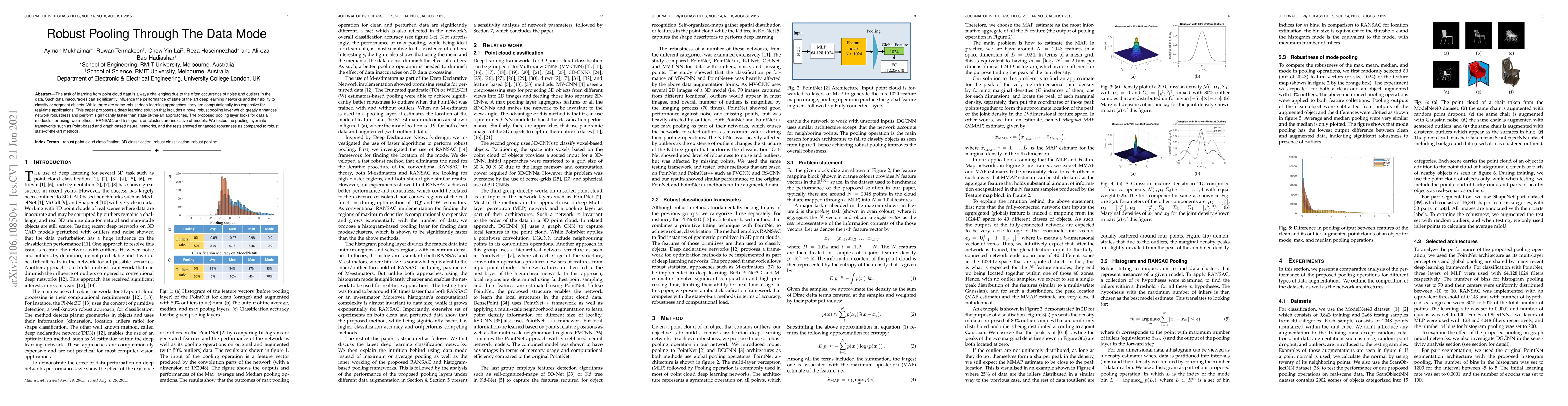 The task of learning from point cloud data is always challenging due to the often occurrence of noise and outliers in the data. Such data inaccuracies can significantly influence the performance of state-of-the-art deep learning networks and their ability to classify or segment objects. While there are some robust deep learning approaches, they are computationally too expensive for real-time applications. This paper proposes a deep learning solution that includes a novel robust pooling layer which greatly enhances network robustness and performs significantly faster than state-of-the-art approaches. The proposed pooling layer looks for data a mode/cluster using two methods, RANSAC, and histogram, as clusters are indicative of models. We tested the pooling layer into frameworks such as Point-based and graph-based neural networks, and the tests showed enhanced robustness as compared to robust state-of-the-art methods.