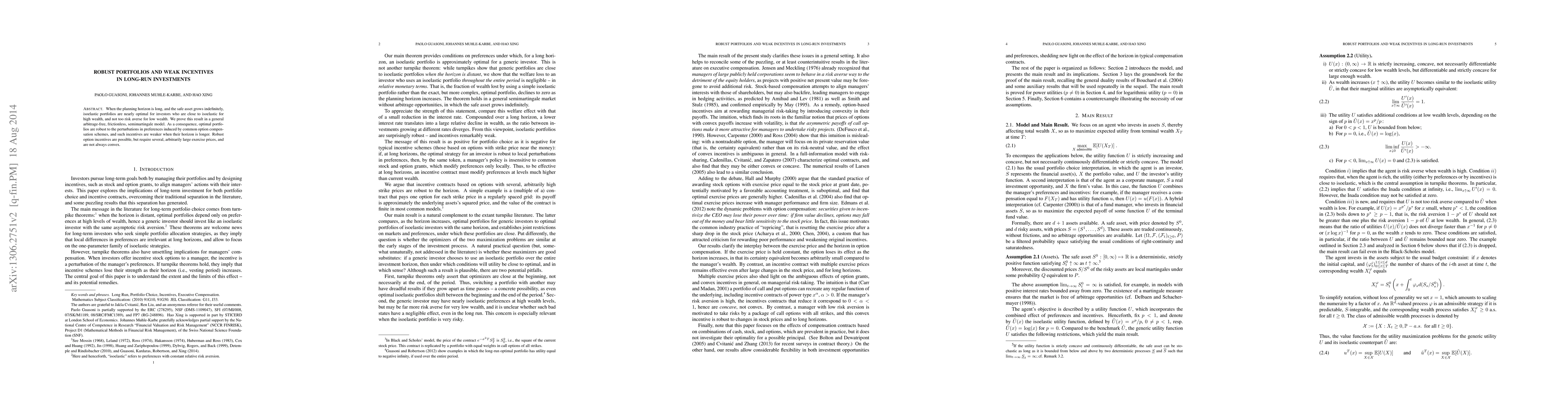 This paper demonstrates that long-term investors benefit from nearly optimal isoelastic portfolios in a frictionless market, showing robustness to preference changes. It concludes that longer investment horizons weaken the incentives from common option compensation schemes, though robust option incentives are feasible but complex and non-convex.