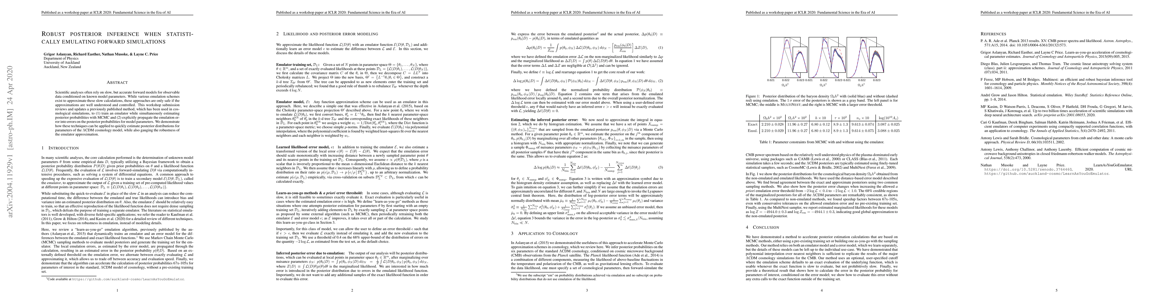 Researchers developed a method to estimate posterior distributions for cosmology model parameters while accounting for emulation error, enabling faster and more accurate analysis of complex data.