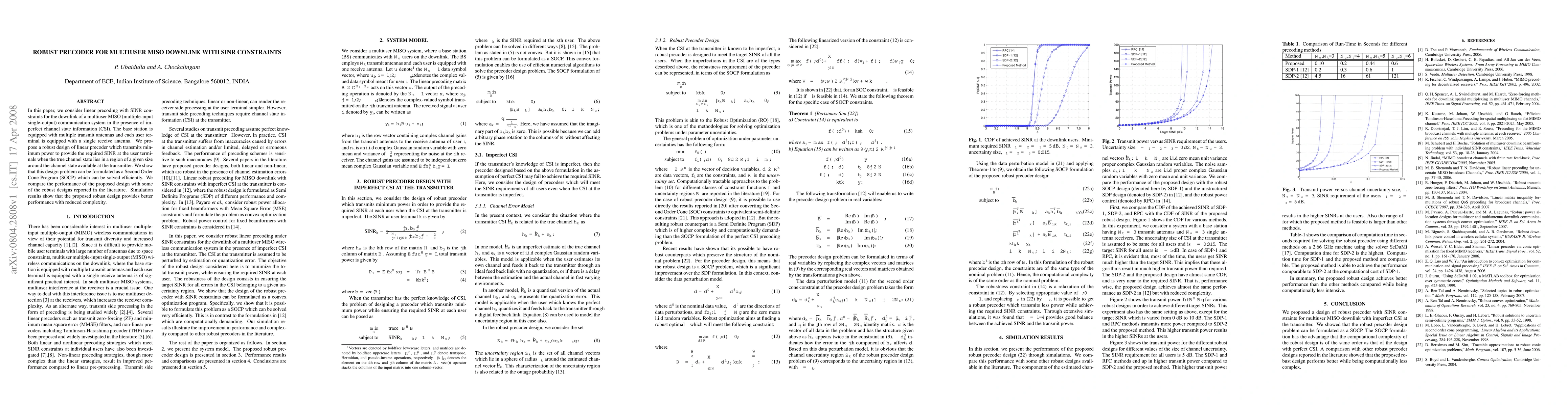 This paper proposes a robust linear precoder for multiuser MISO downlink systems under SINR constraints, formulated as a solvable Second Order Cone Program (SOCP). The design ensures minimum power transmission amidst imperfect channel state information, showing superior performance and lower complexity compared to existing robust designs.