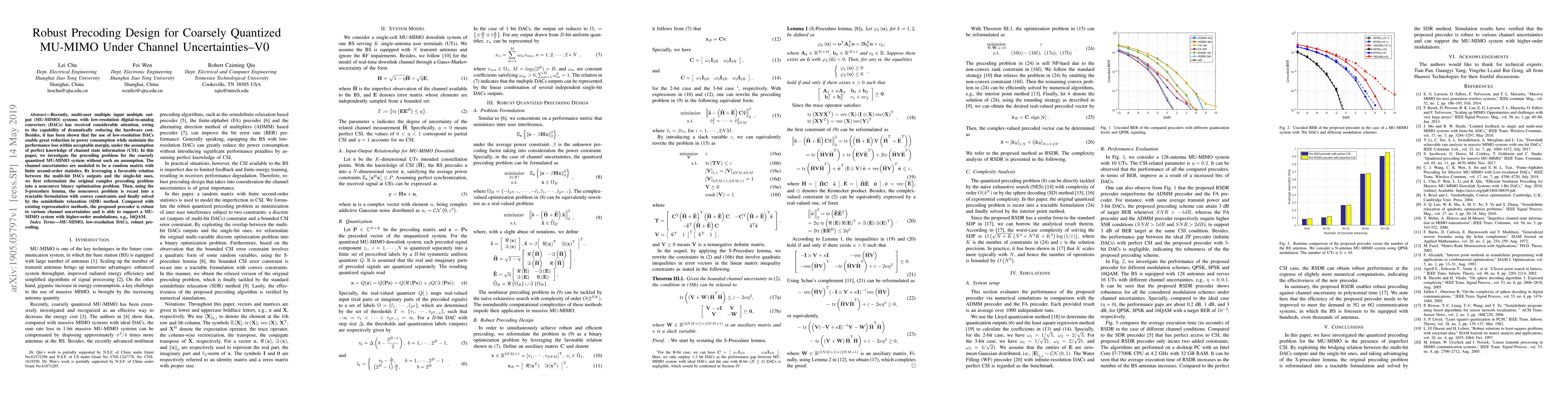 This paper proposes a robust precoding design for coarsely quantized MU-MIMO systems under channel uncertainties, reformulating the complex precoding problem into a tractable convex optimization problem using the S-procedure lemma and semidefinite relaxation, achieving robustness against channel uncertainties and supporting higher-order modulations.