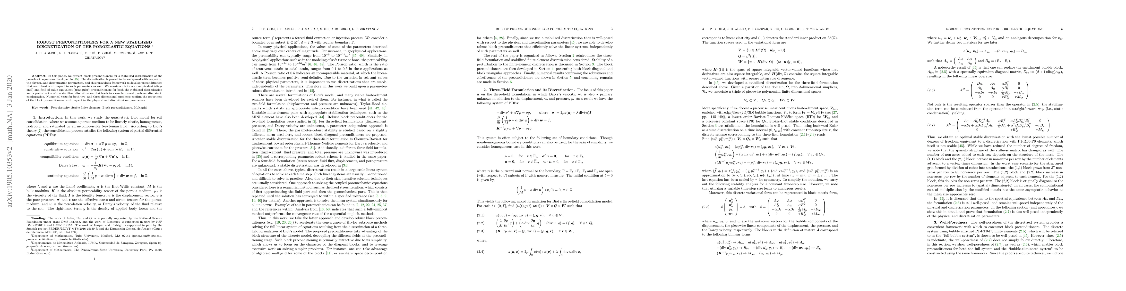 This paper introduces robust preconditioners for a newly stabilized discretization of poroelastic equations, ensuring well-posedness with respect to physical and discretization parameters. It constructs both diagonal and triangular preconditioners, validated through numerical tests confirming their robustness across two- and three-dimensional problems.