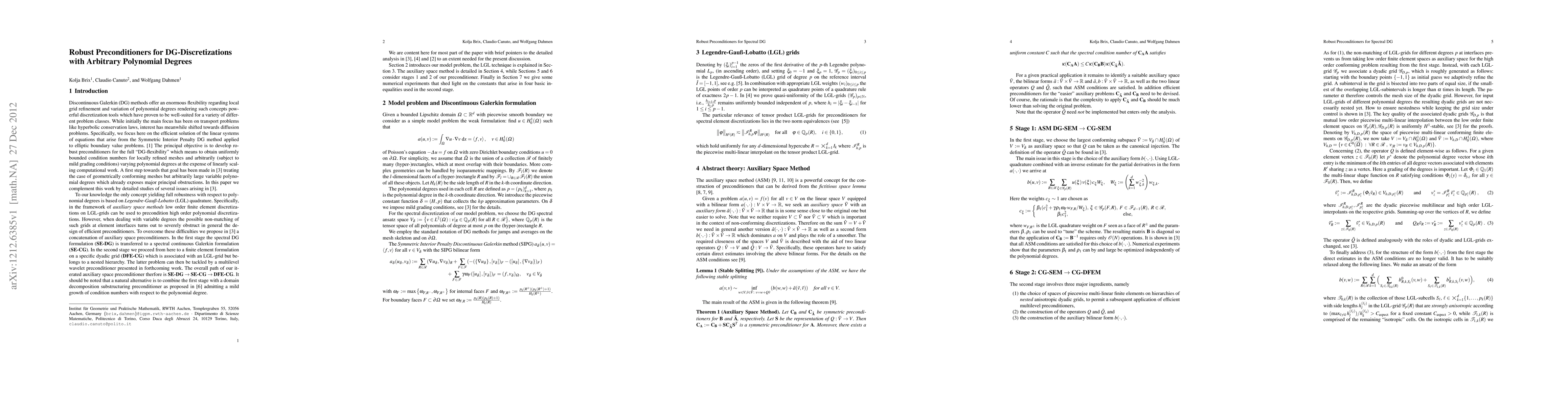 Discontinuous Galerkin (DG) methods offer an enormous flexibility regarding local grid refinement and variation of polynomial degrees for a variety of different problem classes. With a focus on diffusion problems, we consider DG discretizations for elliptic boundary value problems, in particular the efficient solution of the linear systems of equations that arise from the Symmetric Interior Penalty DG method. We announce a multi-stage preconditioner which produces uniformly bounded condition numbers and aims at supporting the full flexibility of DG methods under mild grading conditions. The constructions and proofs are detailed in an upcoming series of papers by the authors. Our preconditioner is based on the concept of the auxiliary space method and techniques from spectral element methods such as Legendre-Gau{\ss}-Lobatto grids. The presentation for the case of geometrically conforming meshes is complemented by numerical studies that shed some light on constants arising in four basic estimates used in the second stage.