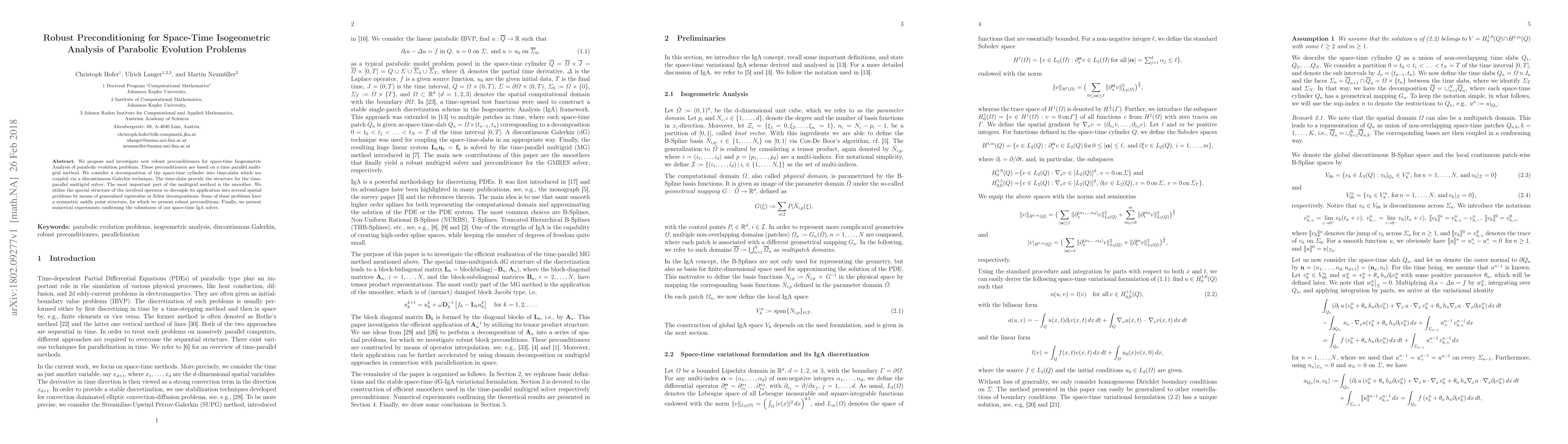 This paper proposes robust preconditioners for space-time Isogeometric Analysis (IgA) of parabolic evolution problems, utilizing a time parallel multigrid method with a discontinuous Galerkin technique. Numerical experiments demonstrate the effectiveness and robustness of the proposed preconditioners.