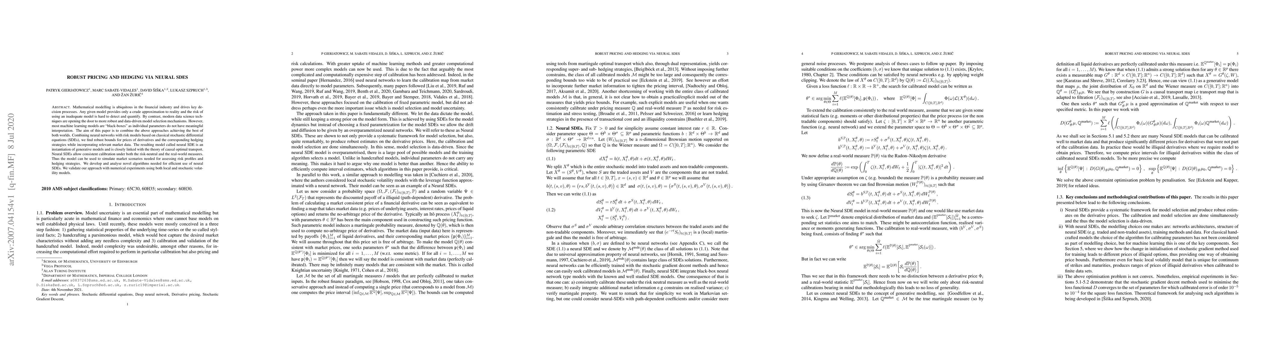 This paper proposes a hybrid model combining neural networks with stochastic differential equations (SDEs) to achieve robust pricing and hedging in finance. The neural SDE model allows for consistent calibration under different measures and provides a data-driven approach to risk assessment and hedging strategies.