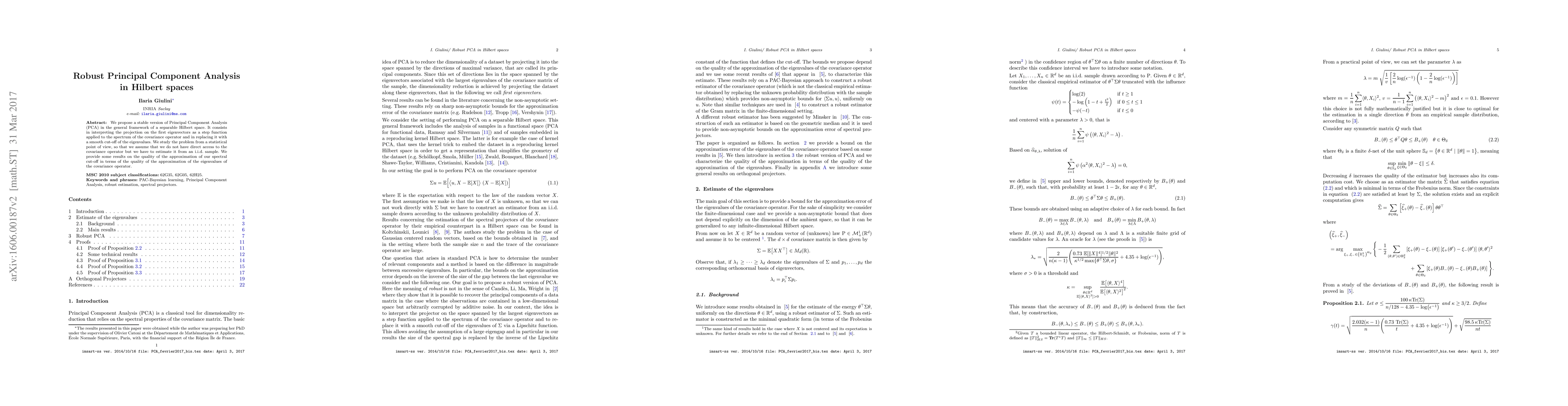 We propose a stable version of Principal Component Analysis (PCA) in the general framework of a separable Hilbert space. It consists in interpreting the projection on the first eigenvectors as a step function applied to the spectrum of the covariance operator and in replacing it with a smooth cut-off of the eigenvalues. We study the problem from a statistical point of view, so that we assume that we do not have direct access to the covariance operator but we have to estimate it from an i.i.d. sample. We provide some results on the quality of the approximation of our spectral cut-off in terms of the quality of the approximation of the eigenvalues of the covariance operator.