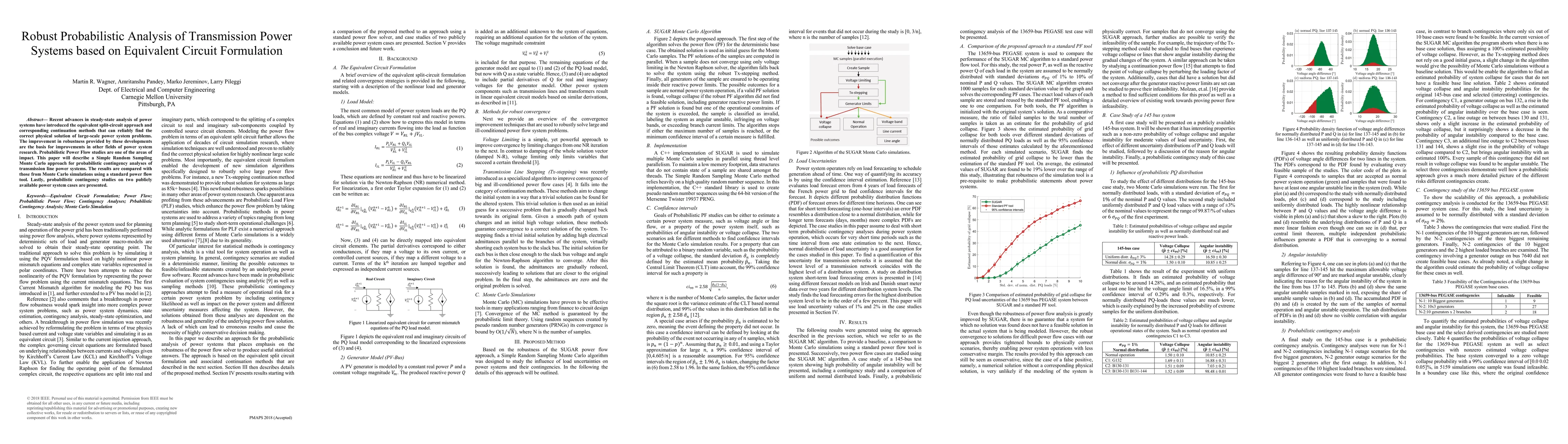 This paper presents a robust probabilistic analysis of transmission power systems using an equivalent split-circuit approach, focusing on Simple Random Sampling Monte Carlo methods for probabilistic contingency studies. Results are compared with standard power flow tools and applied to two public power system cases.