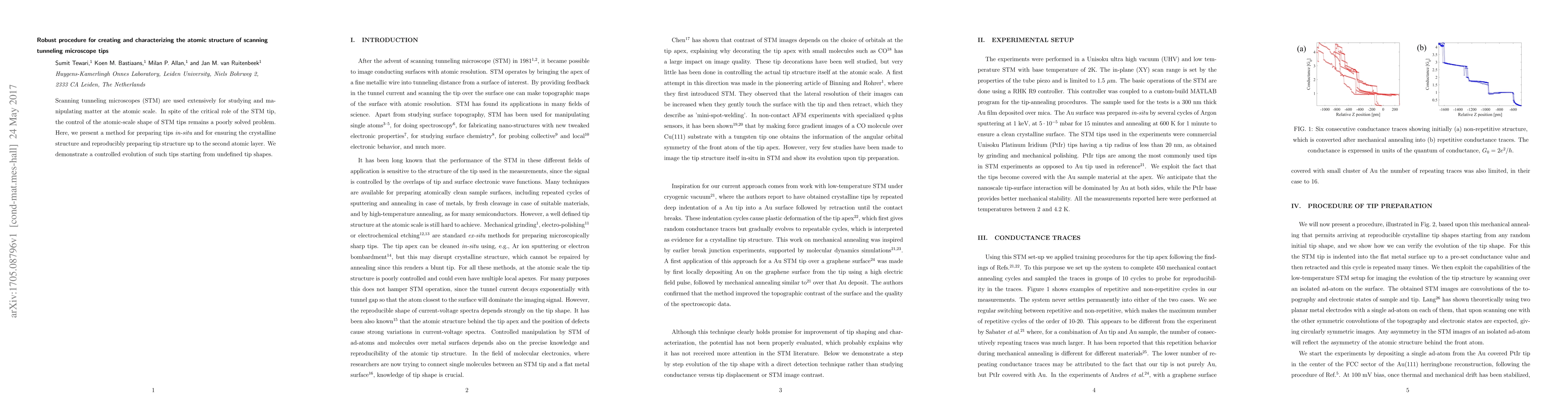 This paper presents a robust procedure for in-situ preparation of scanning tunneling microscope tips, ensuring their crystalline structure and reproducibility at the atomic level, thus addressing the challenge of controlling tip shape at the atomic scale. The method demonstrates a controlled evolution of tip shapes from undefined to well-defined structures.
