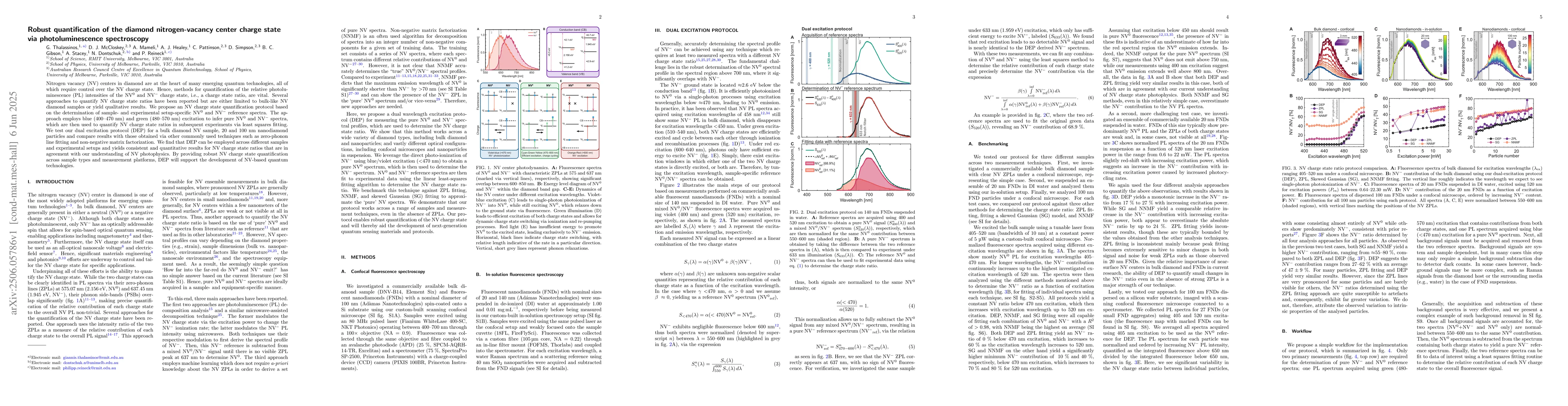 A new method for accurately measuring the charge state of nitrogen-vacancy centers in diamond using dual excitation photoluminescence spectroscopy provides robust results across different samples and experimental setups.