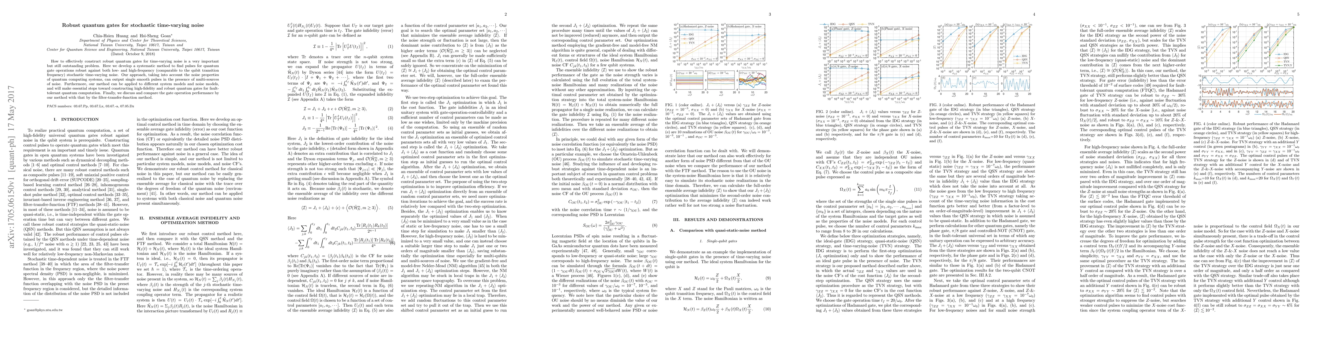 How to effectively construct robust quantum gates for time-varying noise is a very important but still outstanding problem. Here we develop a systematic method to find pulses for quantum gate operations robust against both low- and high-frequency (comparable to the qubit transition frequency) stochastic time-varying noise. Our approach, taking into account the noise properties of quantum computing systems, can output single smooth pulses in the presence of multi-sources of noise. Furthermore, our method can be applied to different system models and noise models, and will make essential steps toward constructing high-fidelity and robust quantum gates for fault-tolerant quantum computation. Finally, we discuss and compare the gate operation performance by our method with that by the filter-transfer-function method.