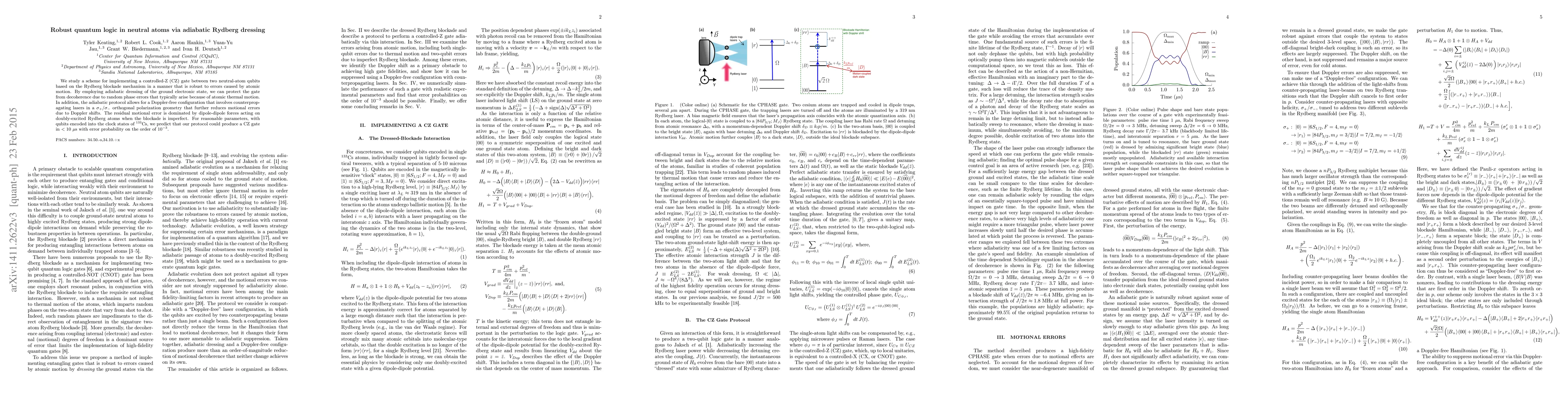 This paper proposes a method to implement a robust controlled-Z gate between neutral atoms using adiabatic Rydberg dressing to mitigate errors from atomic motion, achieving a gate operation in under 10 microseconds with an error probability of around $10^{-3}$. The adiabatic protocol and Doppler-free configuration significantly reduce decoherence and motional errors.