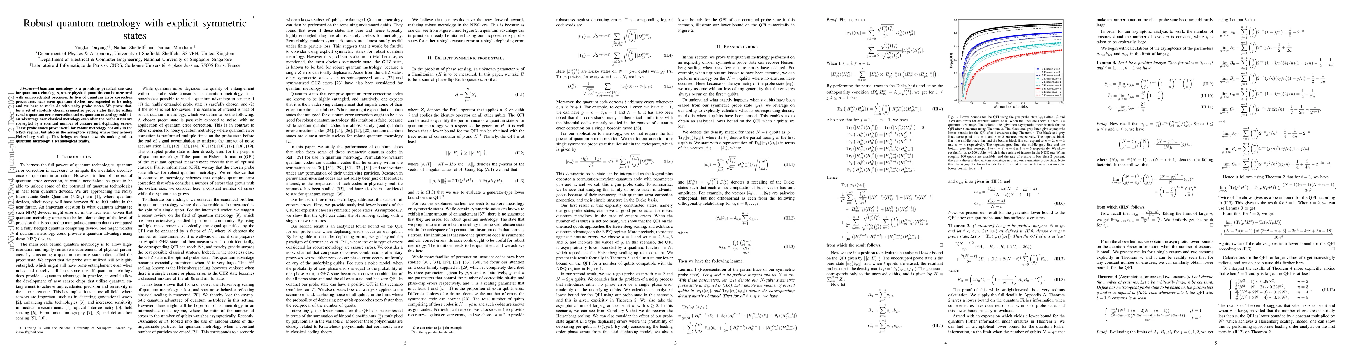 Quantum metrology is a promising practical use case for quantum technologies, where physical quantities can be measured with unprecedented precision. In lieu of quantum error correction procedures, near term quantum devices are expected to be noisy, and we have to make do with noisy probe states. We prove that, for a set of carefully chosen symmetric probe states that lie within certain quantum error correction codes, quantum metrology exhibits an advantage over classical metrology even after the probe states are corrupted by a constant number of erasure and dephasing errors. These probe states prove useful for robust metrology not only in the NISQ regime, but also in the asymptotic setting where they achieve Heisenberg scaling. This brings us closer towards making robust quantum metrology a technological reality.