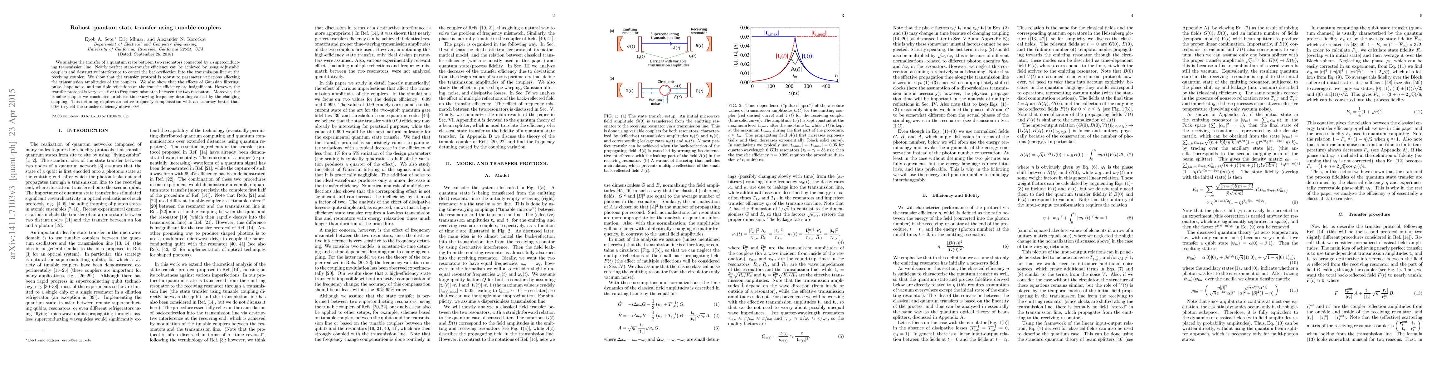 The paper presents a robust quantum state transfer protocol using tunable couplers and analyzes its resilience to various disturbances, providing insights into improving quantum information processing systems.