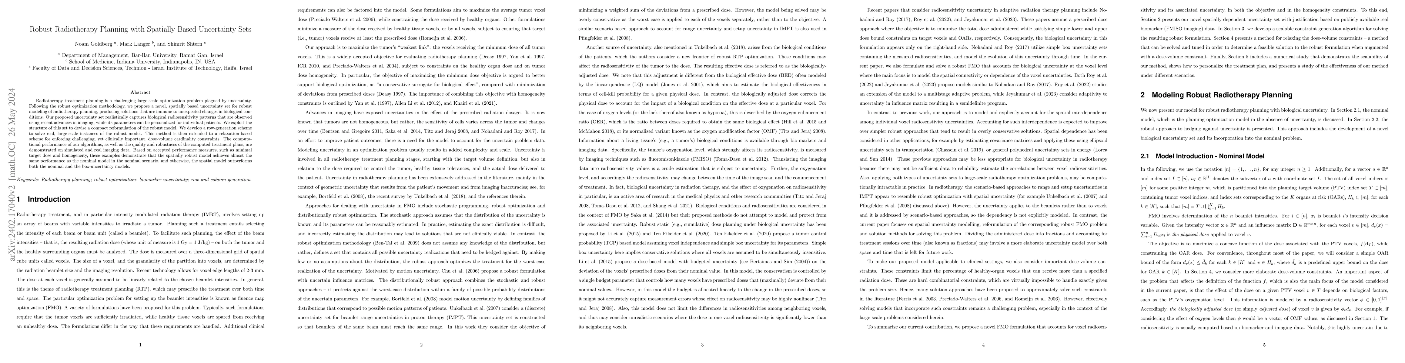 This paper introduces a novel spatially based uncertainty set for robust radiotherapy planning, enhancing the model's robustness against biological condition variations. The proposed method outperforms nominal and box-uncertainty models in robustness, as demonstrated through computational performance and plan quality on real and simulated data.