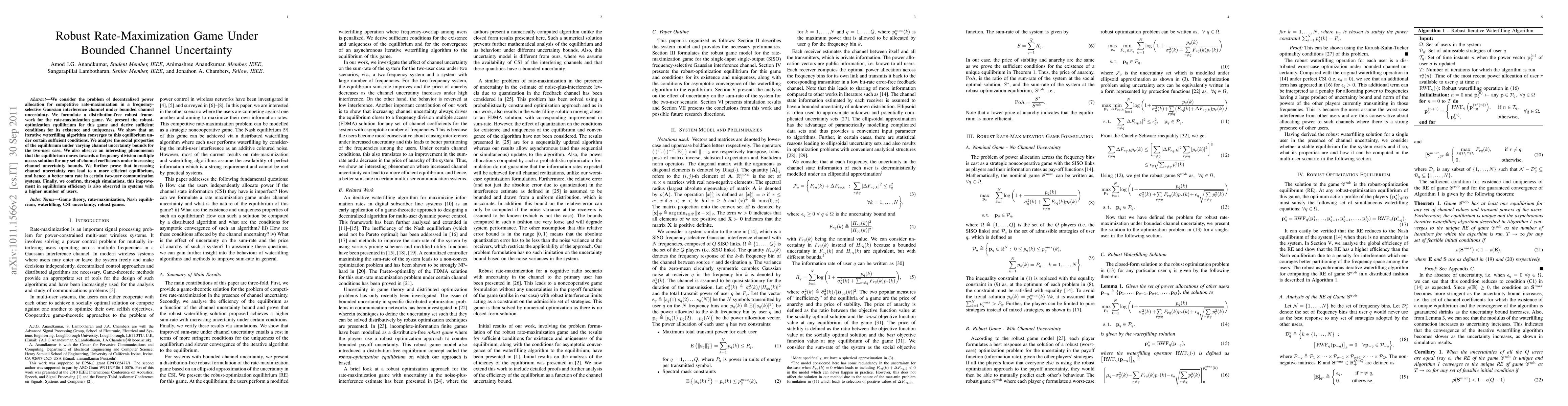 This paper proposes a robust optimization framework for decentralized power allocation in a competitive rate-maximization game under bounded channel uncertainty. It demonstrates the existence and uniqueness of a robust-optimization equilibrium and shows that an iterative waterfilling algorithm converges to it, leading to improved sum rate efficiency under higher channel uncertainty.
