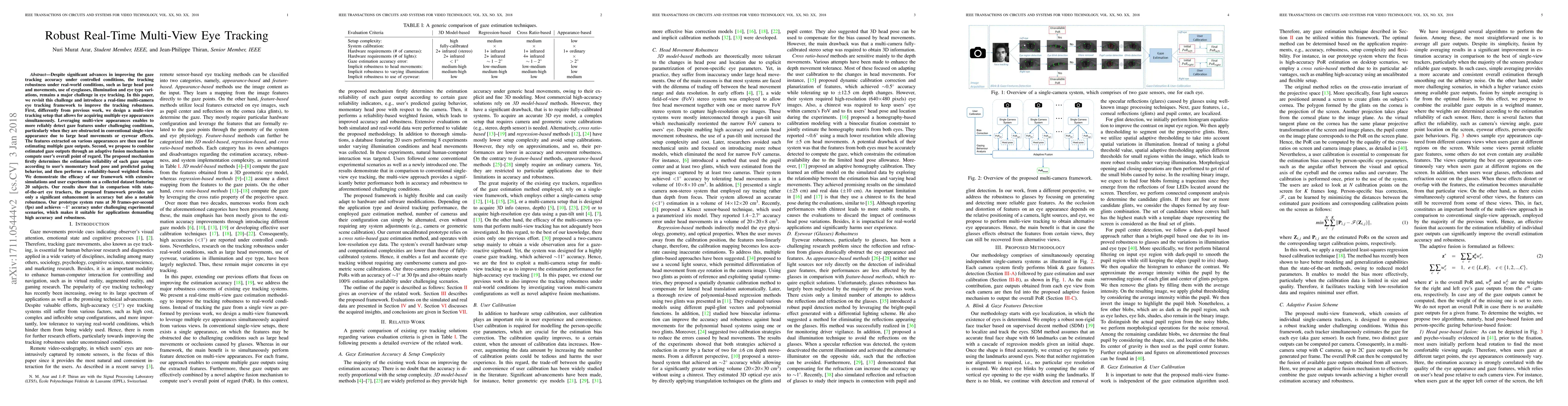 This paper presents a robust real-time multi-view eye tracking framework that enhances gaze tracking accuracy and robustness under challenging real-world conditions. It employs a multi-camera setup to capture multiple eye appearances, which improves feature detection reliability, and uses an adaptive fusion mechanism to combine gaze estimates for accurate point of regard determination.