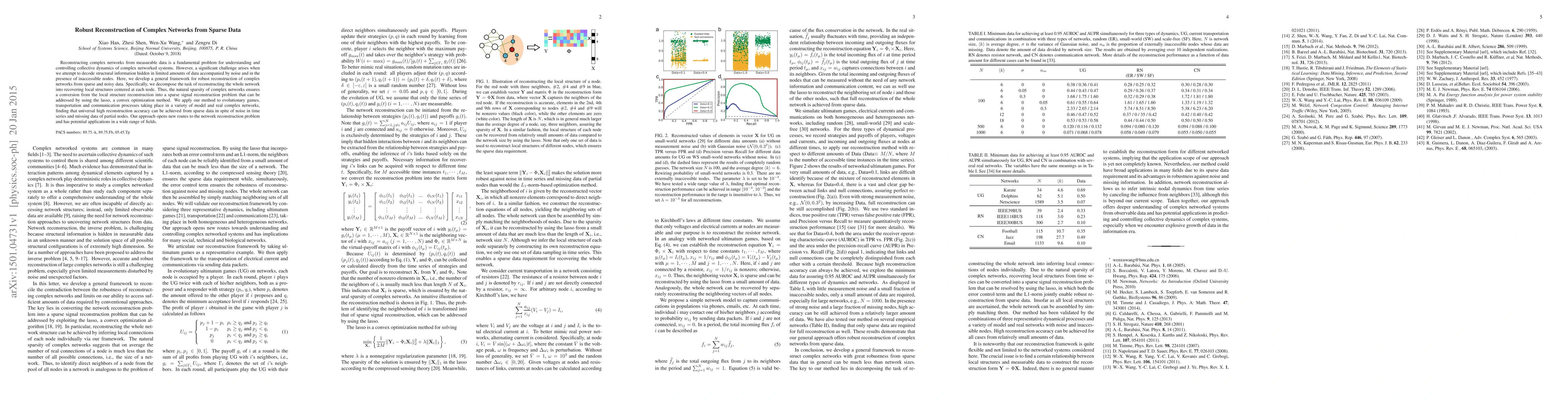 This paper presents a robust framework for reconstructing complex networks from sparse and noisy data by decomposing the network into local structures and using lasso optimization. The method achieves high reconstruction accuracy across various model and real-world networks, demonstrating its potential for diverse applications.