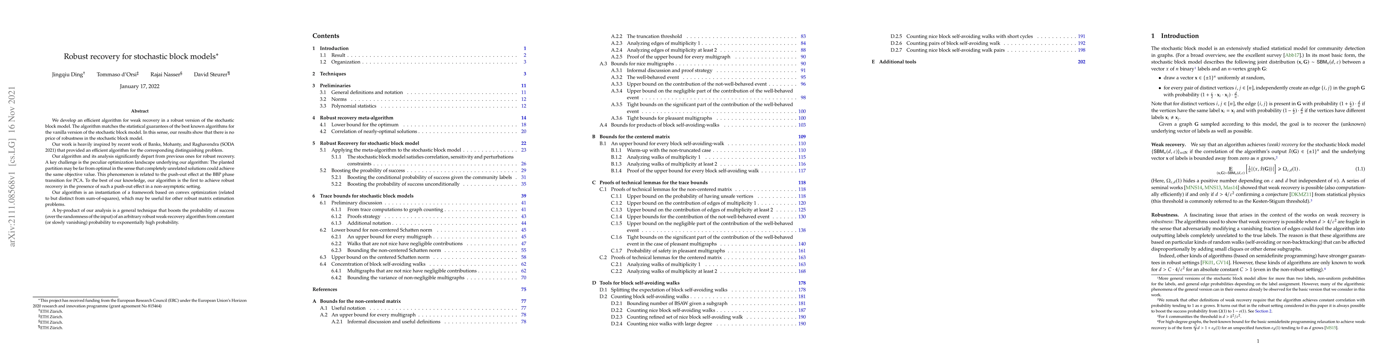 This paper presents an efficient algorithm for robust recovery in stochastic block models, matching the statistical guarantees of the best known algorithms for the standard model, demonstrating no price of robustness. The algorithm leverages a new convex optimization framework and introduces a general technique to significantly boost the success probability of robust weak-recovery algorithms.