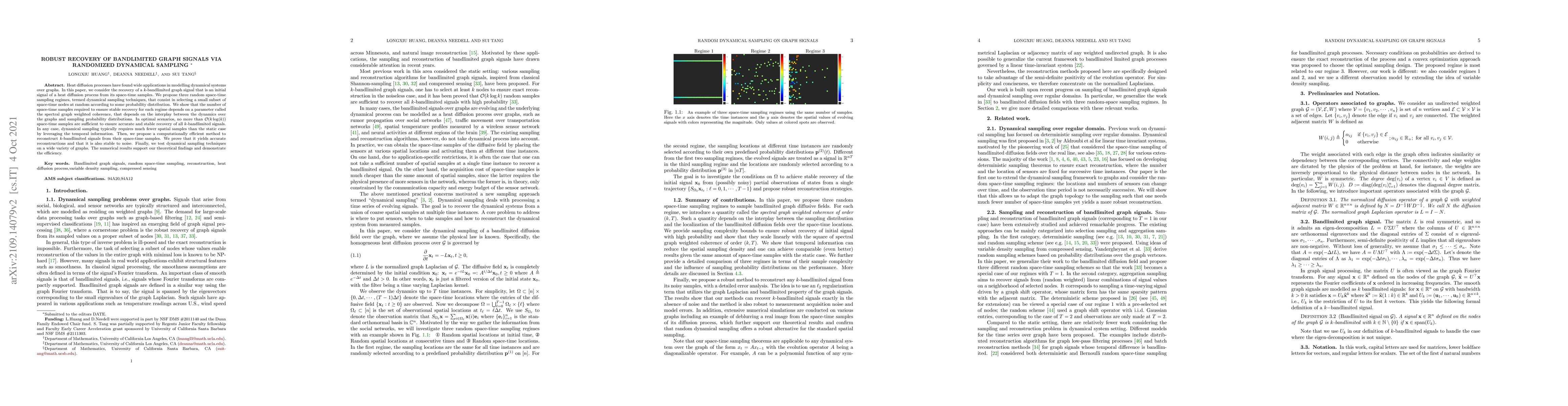 This paper proposes three randomized dynamical sampling techniques for recovering $k$-bandlimited graph signals from space-time samples, showing that optimal scenarios require only $\mathcal{O}(k \log(k))$ samples. It also presents a computationally efficient method for reconstructing these signals, proving its accuracy and noise stability.