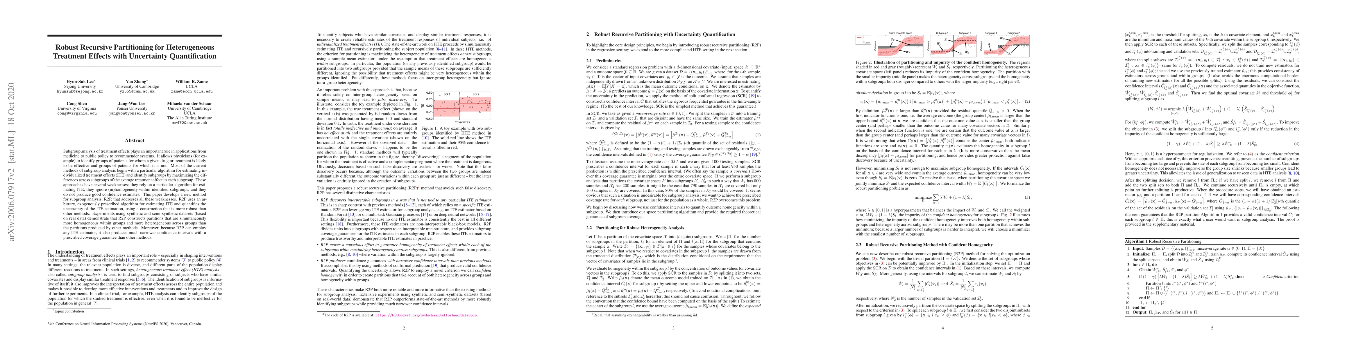 Subgroup analysis of treatment effects plays an important role in applications from medicine to public policy to recommender systems. It allows physicians (for example) to identify groups of patients for whom a given drug or treatment is likely to be effective and groups of patients for which it is not. Most of the current methods of subgroup analysis begin with a particular algorithm for estimating individualized treatment effects (ITE) and identify subgroups by maximizing the difference across subgroups of the average treatment effect in each subgroup. These approaches have several weaknesses: they rely on a particular algorithm for estimating ITE, they ignore (in)homogeneity within identified subgroups, and they do not produce good confidence estimates. This paper develops a new method for subgroup analysis, R2P, that addresses all these weaknesses. R2P uses an arbitrary, exogenously prescribed algorithm for estimating ITE and quantifies the uncertainty of the ITE estimation, using a construction that is more robust than other methods. Experiments using synthetic and semi-synthetic datasets (based on real data) demonstrate that R2P constructs partitions that are simultaneously more homogeneous within groups and more heterogeneous across groups than the partitions produced by other methods. Moreover, because R2P can employ any ITE estimator, it also produces much narrower confidence intervals with a prescribed coverage guarantee than other methods.