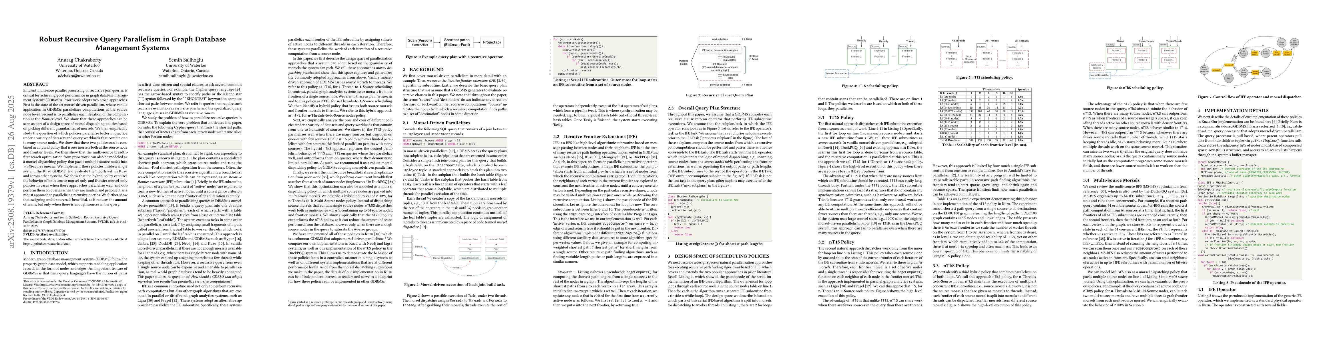 Efficient multi-core parallel processing of recursive join queries is critical for achieving good performance in graph database management systems (GDBMSs). Prior work adopts two broad approaches. First is the state of the art morsel-driven parallelism, whose vanilla application in GDBMSs parallelizes computations at the source node level. Second is to parallelize each iteration of the computation at the frontier level. We show that these approaches can be seen as part of a design space of morsel dispatching policies based on picking different granularities of morsels. We then empirically study the question of which policies parallelize better in practice under a variety of datasets and query workloads that contain one to many source nodes. We show that these two policies can be combined in a hybrid policy that issues morsels both at the source node and frontier levels. We then show that the multi-source breadth-first search optimization from prior work can also be modeled as a morsel dispatching policy that packs multiple source nodes into multi-source morsels. We implement these policies inside a single system, the Kuzu GDBMS, and evaluate them both within Kuzu and across other systems. We show that the hybrid policy captures the behavior of both source morsel-only and frontier morsel-only policies in cases when these approaches parallelize well, and out-perform them on queries when they are limited, and propose it as a robust approach to parallelizing recursive queries. We further show that assigning multi-sources is beneficial, as it reduces the amount of scans, but only when there is enough sources in the query.