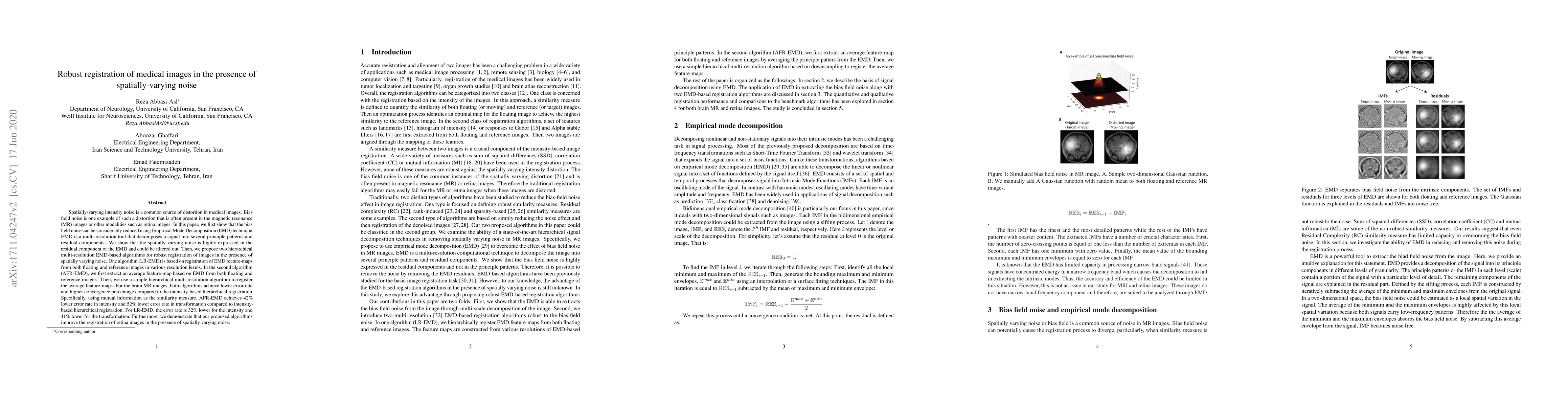 This paper proposes two EMD-based algorithms for robust medical image registration with spatially-varying noise, achieving lower error rates than traditional intensity-based methods.