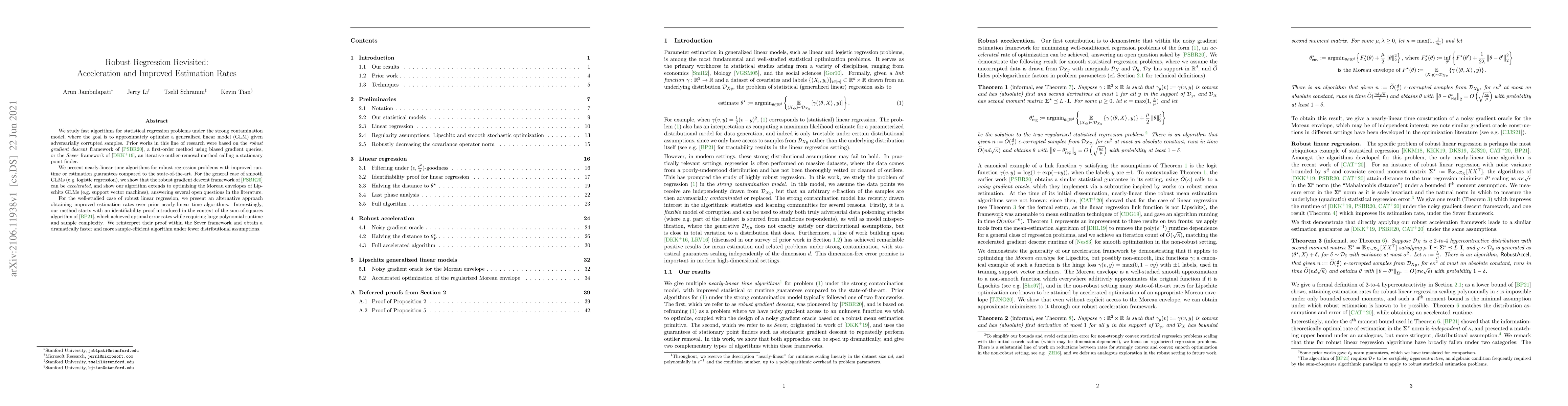 We study fast algorithms for statistical regression problems under the strong contamination model, where the goal is to approximately optimize a generalized linear model (GLM) given adversarially corrupted samples. Prior works in this line of research were based on the robust gradient descent framework of Prasad et. al., a first-order method using biased gradient queries, or the Sever framework of Diakonikolas et. al., an iterative outlier-removal method calling a stationary point finder. We present nearly-linear time algorithms for robust regression problems with improved runtime or estimation guarantees compared to the state-of-the-art. For the general case of smooth GLMs (e.g. logistic regression), we show that the robust gradient descent framework of Prasad et. al. can be accelerated, and show our algorithm extends to optimizing the Moreau envelopes of Lipschitz GLMs (e.g. support vector machines), answering several open questions in the literature. For the well-studied case of robust linear regression, we present an alternative approach obtaining improved estimation rates over prior nearly-linear time algorithms. Interestingly, our method starts with an identifiability proof introduced in the context of the sum-of-squares algorithm of Bakshi and Prasad, which achieved optimal error rates while requiring large polynomial runtime and sample complexity. We reinterpret their proof within the Sever framework and obtain a dramatically faster and more sample-efficient algorithm under fewer distributional assumptions.