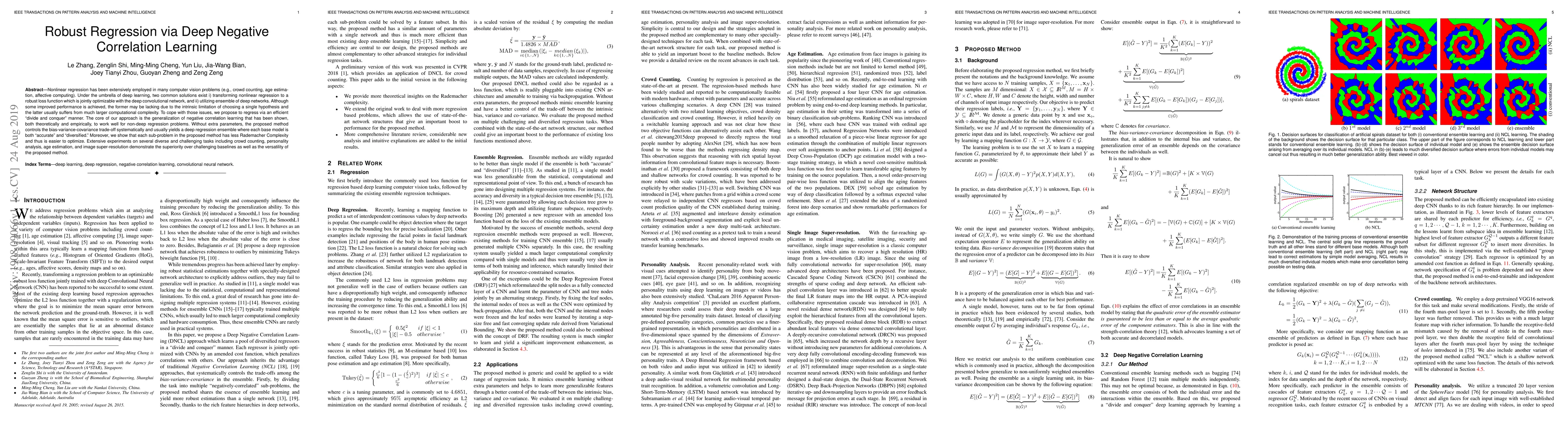 The paper proposes a robust regression method using deep negative correlation learning that efficiently divides the regression problem into sub-problems. This approach balances the bias-variance trade-off and optimizes each sub-problem more easily, leading to accurate and diversified deep regression models.