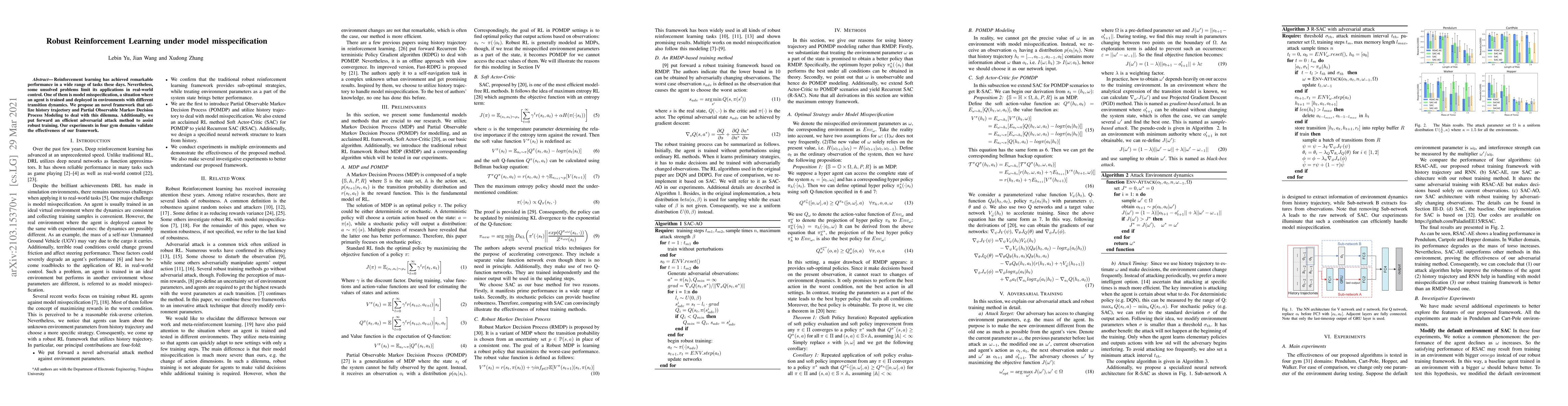 This paper proposes a novel framework to tackle model misspecification in reinforcement learning by leveraging historical trajectories and Partial Observable Markov Decision Process Modeling, along with an adversarial attack method for robust training. Experiments in four gym domains demonstrate the framework's effectiveness.