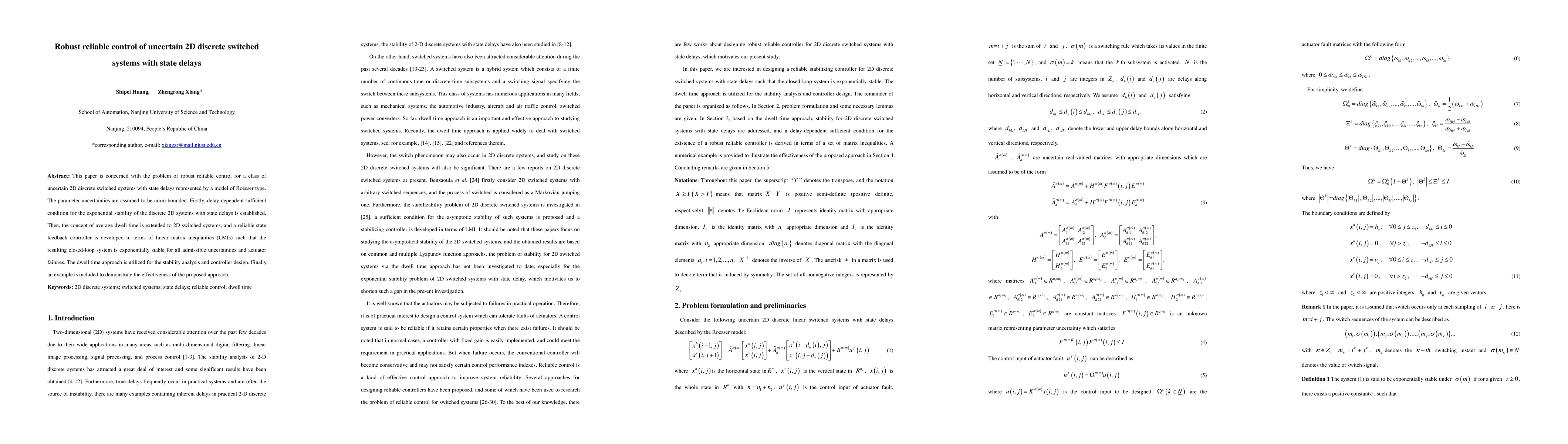 This paper addresses robust reliable control for uncertain 2D discrete switched systems with state delays, establishing delay-dependent stability conditions and developing a reliable state feedback controller via LMIs to ensure exponential stability under uncertainties and actuator failures. An example validates the proposed method.