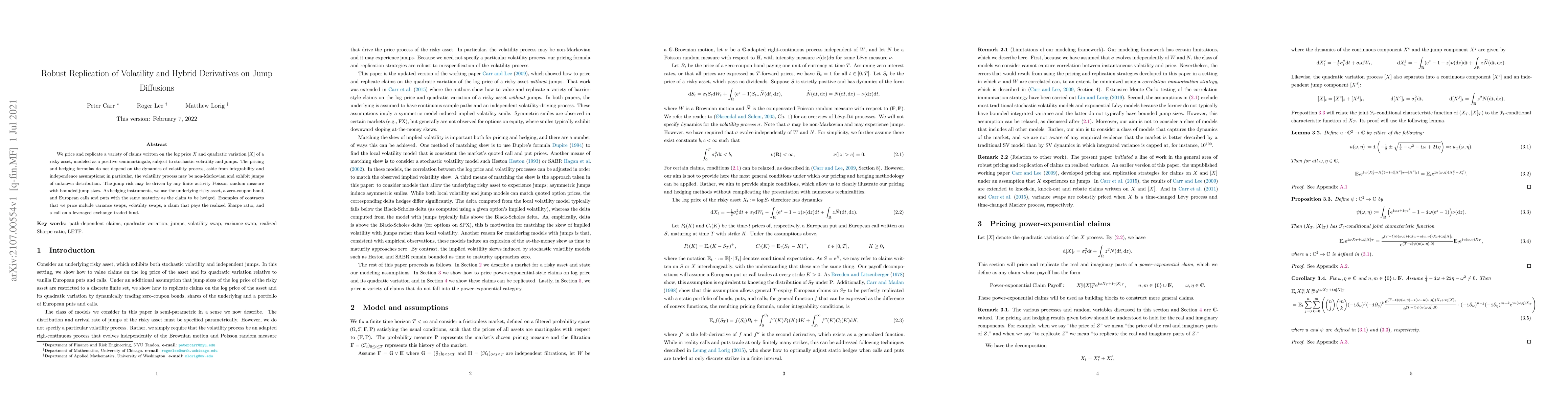 We price and replicate a variety of claims written on the log price $X$ and quadratic variation $[X]$ of a risky asset, modeled as a positive semimartingale, subject to stochastic volatility and jumps. The pricing and hedging formulas do not depend on the dynamics of volatility process, aside from integrability and independence assumptions; in particular, the volatility process may be non-Markovian and exhibit jumps of unknown distribution. The jump risk may be driven by any finite activity Poisson random measure with bounded jump sizes. As hedging instruments, we use the underlying risky asset, a zero-coupon bond, and European calls and puts with the same maturity as the claim to be hedged. Examples of contracts that we price include variance swaps, volatility swaps, a claim that pays the realized Sharpe ratio, and a call on a leveraged exchange traded fund.