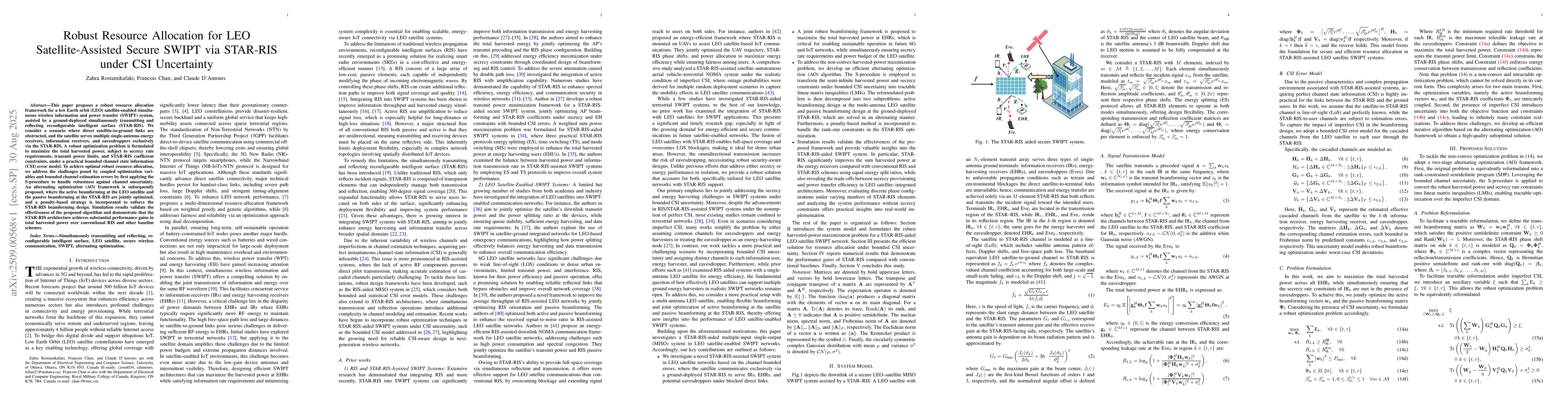 This paper proposes a robust resource allocation framework for a low Earth orbit (LEO) satellite-enabled simultaneous wireless information and power transfer (SWIPT) system, assisted by a ground-deployed simultaneously transmitting and reflecting reconfigurable intelligent surface (STAR-RIS). We consider a scenario where direct satellite-to-ground links are obstructed, and the satellite serves multiple single-antenna energy receivers, information receivers, and eavesdroppers exclusively via the STAR-RIS. A robust optimization problem is formulated to maximize the total harvested power, subject to secrecy rate requirements, transmit power limits, and STAR-RIS coefficient constraints, under a practical bounded channel state information (CSI) error model. To achieve optimal robust resource allocation, we address the challenges posed by coupled optimization variables and bounded channel estimation errors by first applying the S-procedure to handle robustness against channel uncertainty. An alternating optimization (AO) framework is subsequently proposed, where the active beamforming at the LEO satellite and the passive beamforming at the STAR-RIS are jointly optimized, and a penalty-based strategy is incorporated to enforce the STAR-RIS beamforming design. Simulation results validate the effectiveness of the proposed algorithm and demonstrate that the STAR-RIS architecture achieves substantial performance gains in total harvested power over conventional RIS and other baseline schemes.