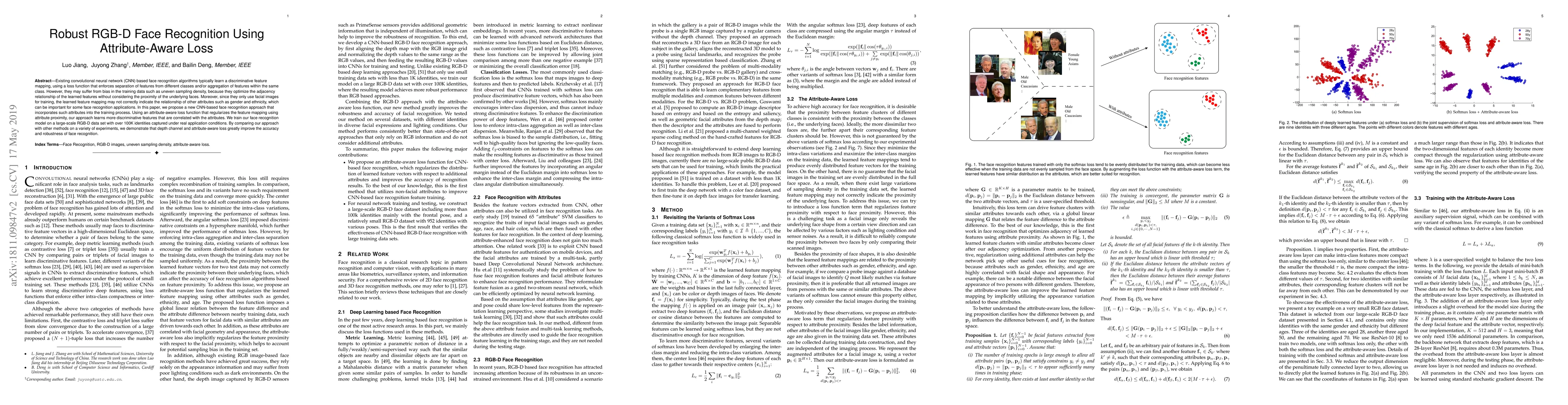 This paper proposes a CNN-based face recognition method that incorporates attribute-aware loss to improve feature discrimination, addressing biases in training data. Experiments on a large RGB-D dataset show significant improvements in accuracy and robustness compared to conventional methods.