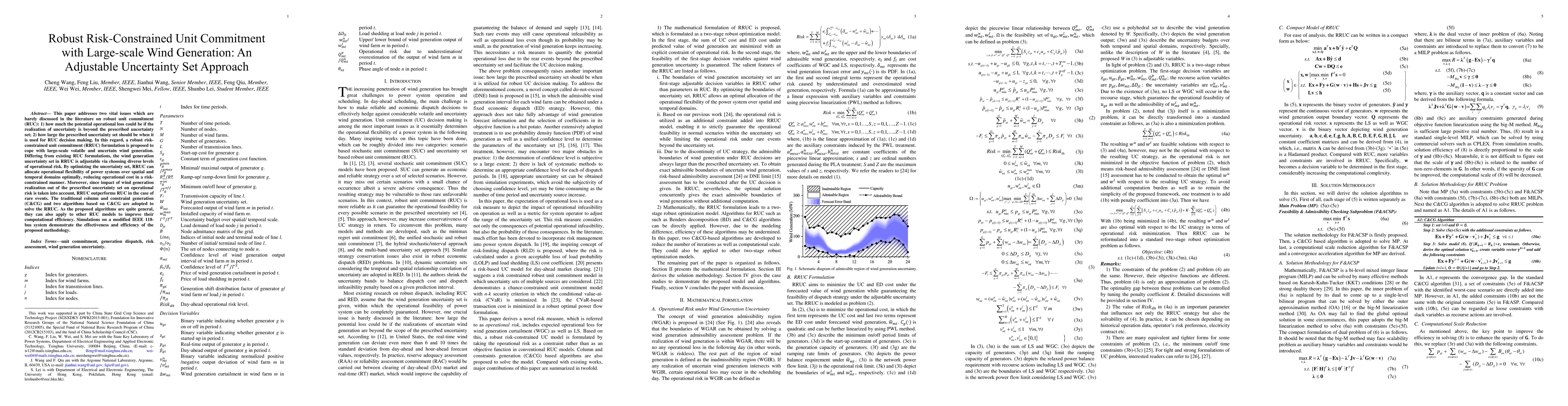 This paper proposes a robust risk-constrained unit commitment (RRUC) formulation to manage large-scale wind generation uncertainty, optimizing the uncertainty set to reduce operational costs while considering rare event impacts. Three algorithms based on column and constraint generation are developed to solve the RRUC model, demonstrating effectiveness through simulations on a modified IEEE 118-bus system.