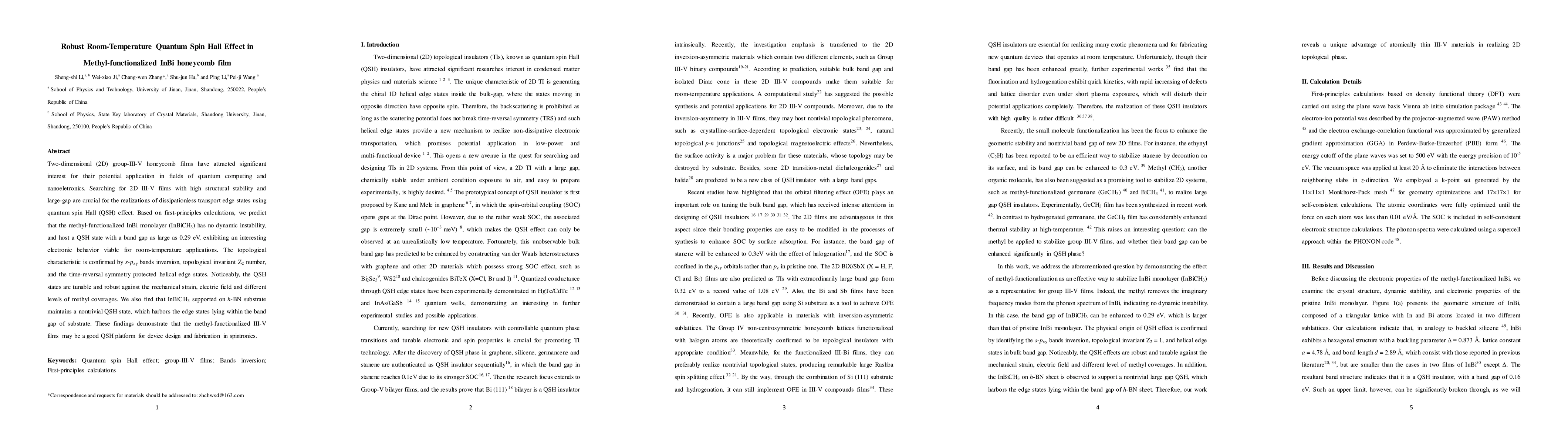 This paper predicts that methyl-functionalized InBi monolayer (InBiCH3) exhibits a robust room-temperature quantum spin Hall effect with a large band gap of 0.29 eV, confirmed by topological invariants and helical edge states, making it a promising material for spintronics applications. The QSH states in InBiCH3 are shown to be tunable and stable against various perturbations, highlighting its potential for quantum computing and nanoelectronics.