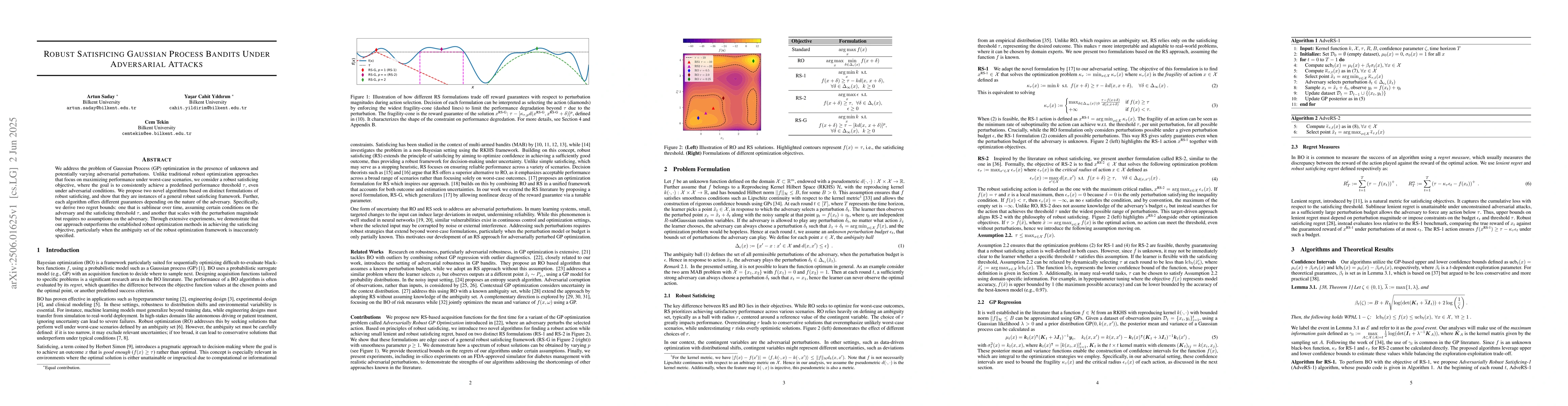 The paper proposes two novel algorithms for robust satisficing Gaussian Process Bandits under adversarial attacks, formulated within a general robust satisficing framework.