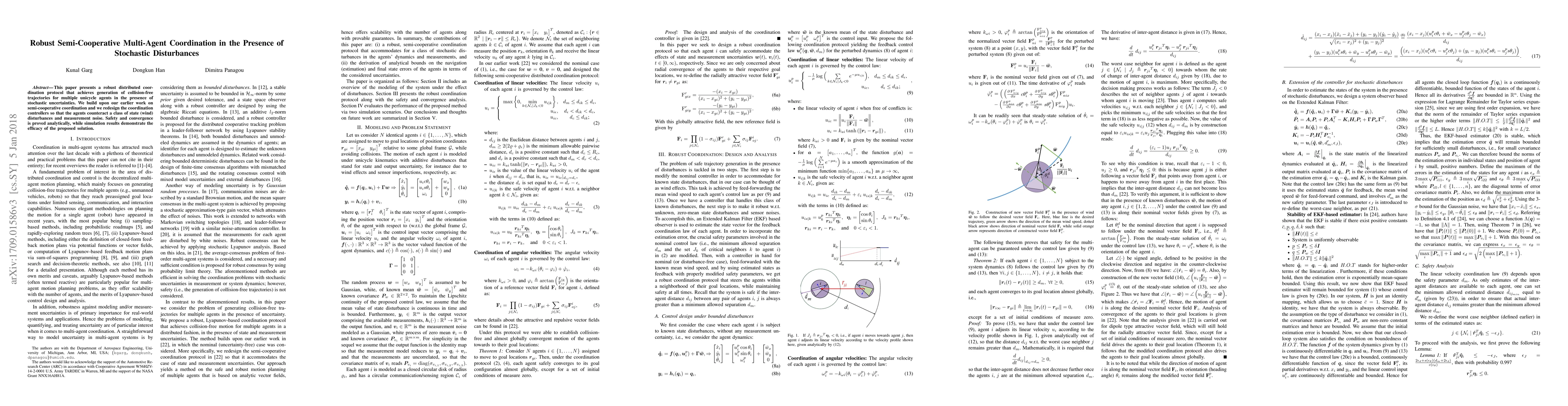 This paper presents a robust distributed coordination protocol that achieves generation of collision-free trajectories for multiple unicycle agents in the presence of stochastic uncertainties. We build upon our earlier work on semi-cooperative coordination and we redesign the coordination controllers so that the agents counteract a class of state (wind) disturbances and measurement noise. Safety and convergence is proved analytically, while simulation results demonstrate the efficacy of the proposed solution.