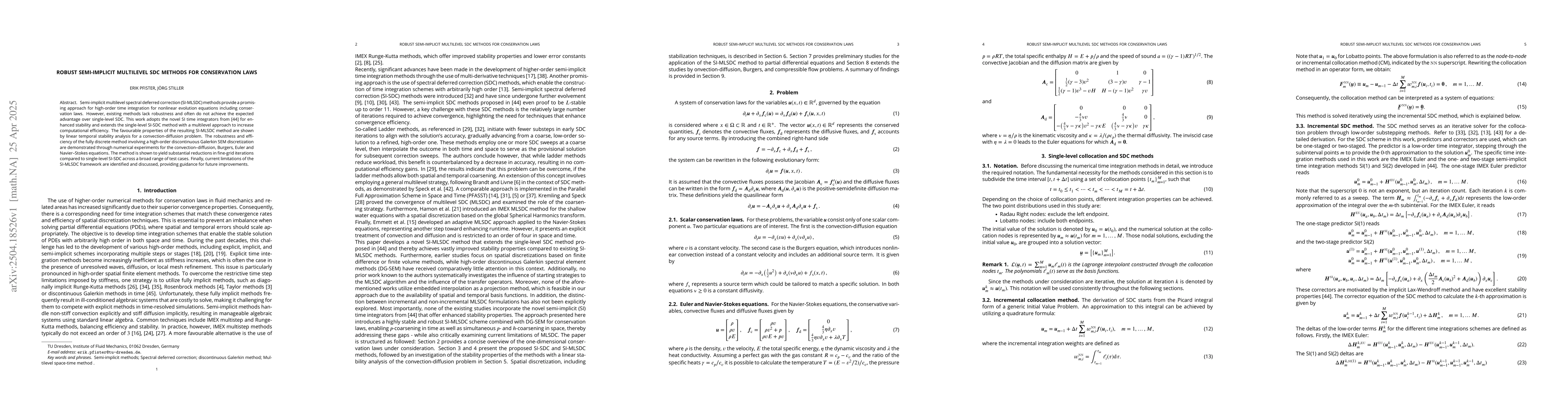 The paper presents a novel SI-MLSDC method that combines semi-implicit time integration with multilevel spectral deferred correction, providing a robust and efficient approach for solving conservation laws.