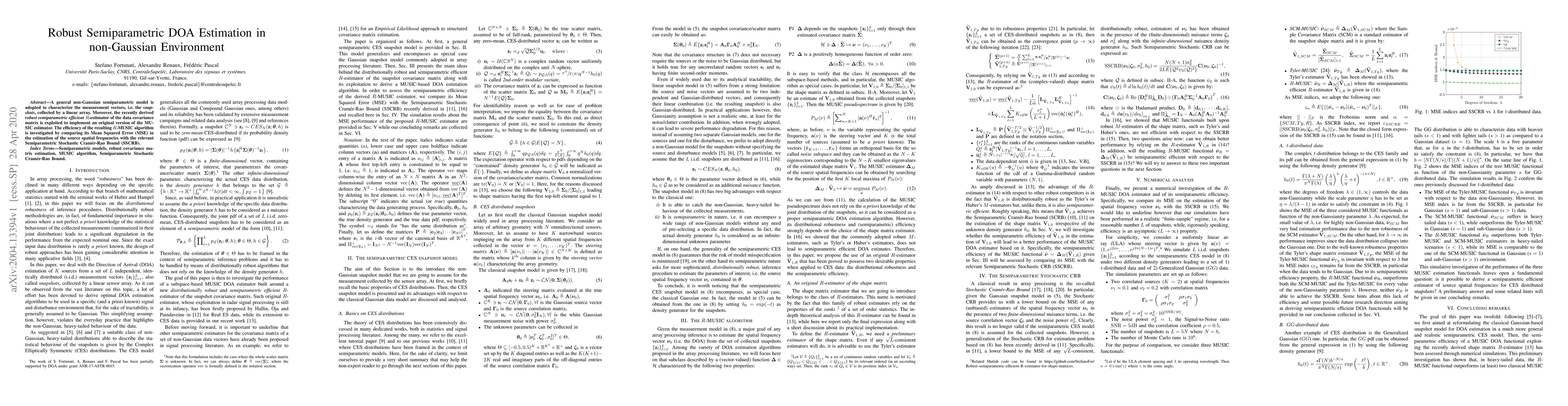 This paper proposes a robust semiparametric method for Direction of Arrival (DOA) estimation in non-Gaussian environments using a novel $R$-MUSIC algorithm based on the robust semiparametric efficient $R$-estimator of the data covariance matrix. The performance is evaluated by comparing its Mean Squared Error (MSE) to the Semiparametric Stochastic Cramér-Rao Bound (SSCRB).