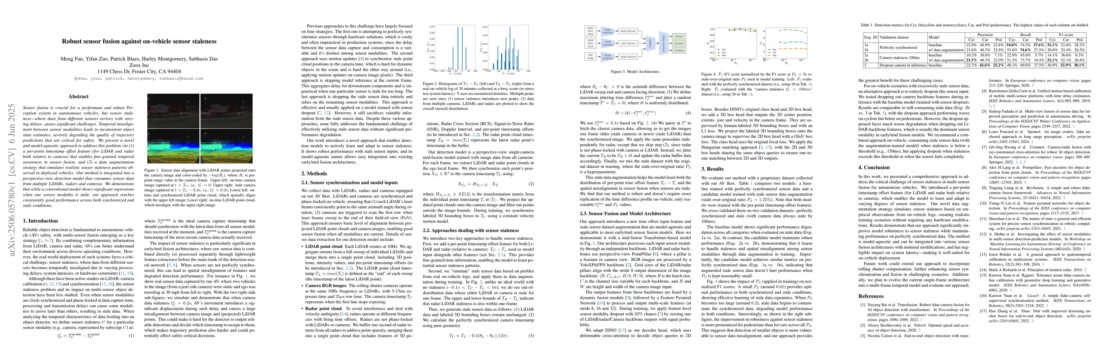 A novel approach to sensor fusion in autonomous vehicles tackles staleness issues with a per-point timestamp offset feature and data augmentation strategy, achieving consistent performance across synchronized and stale conditions.