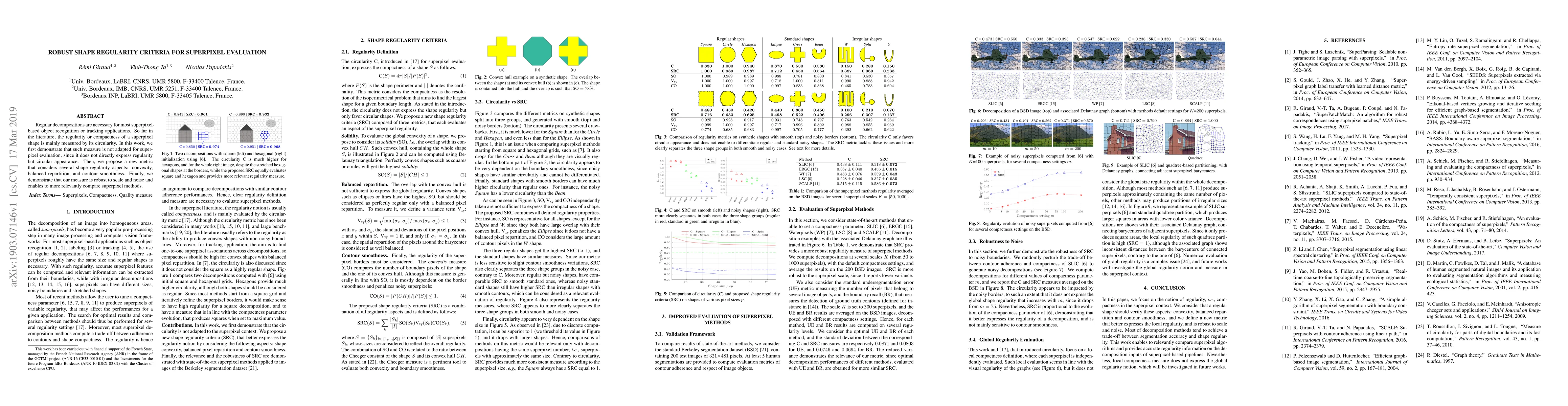 This paper critiques the use of circularity for evaluating superpixel shape regularity and proposes a new metric incorporating convexity, balanced repartition, and contour smoothness. The new metric is shown to be robust to scale and noise, providing a more relevant comparison of superpixel methods.