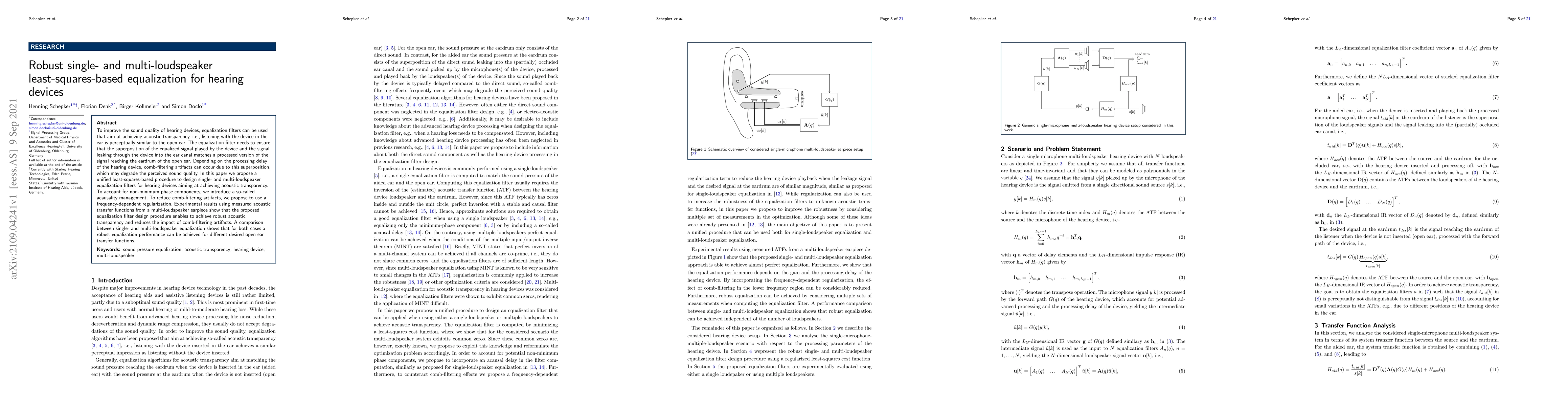To improve the sound quality of hearing devices, equalization filters can be used that aim at achieving acoustic transparency, i.e., listening with the device in the ear is perceptually similar to the open ear. The equalization filter needs to ensure that the superposition of the equalized signal played by the device and the signal leaking through the device into the ear canal matches a processed version of the signal reaching the eardrum of the open ear. Depending on the processing delay of the hearing device, comb-filtering artifacts can occur due to this superposition, which may degrade the perceived sound quality. In this paper we propose a unified least-squares-based procedure to design single- and multi-loudspeaker equalization filters for hearing devices aiming at achieving acoustic transparency. To account for non-minimum phase components, we introduce a so-called acausality management. To reduce comb-filtering artifacts, we propose to use a frequency-dependent regularization. Experimental results using measured acoustic transfer functions from a multi-loudspeaker earpiece show that the proposed equalization filter design procedure enables to achieve robust acoustic transparency and reduces the impact of comb-filtering artifacts. A comparison between single- and multi-loudspeaker equalization shows that for both cases a robust equalization performance can be achieved for different desired open ear transfer functions.