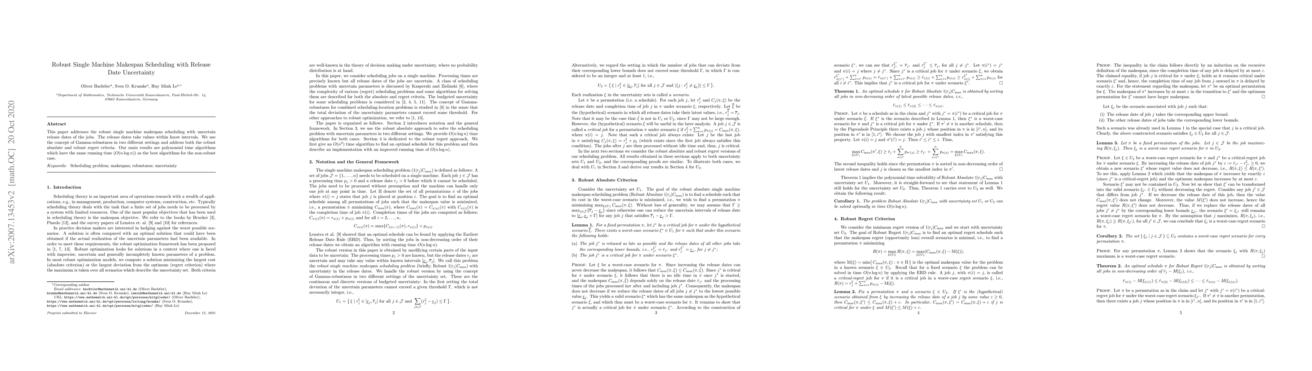 This paper develops polynomial time algorithms for robust single machine scheduling with uncertain job release dates, achieving optimal O(n log n) runtime. It explores gamma-robustness under both robust absolute and regret criteria.
