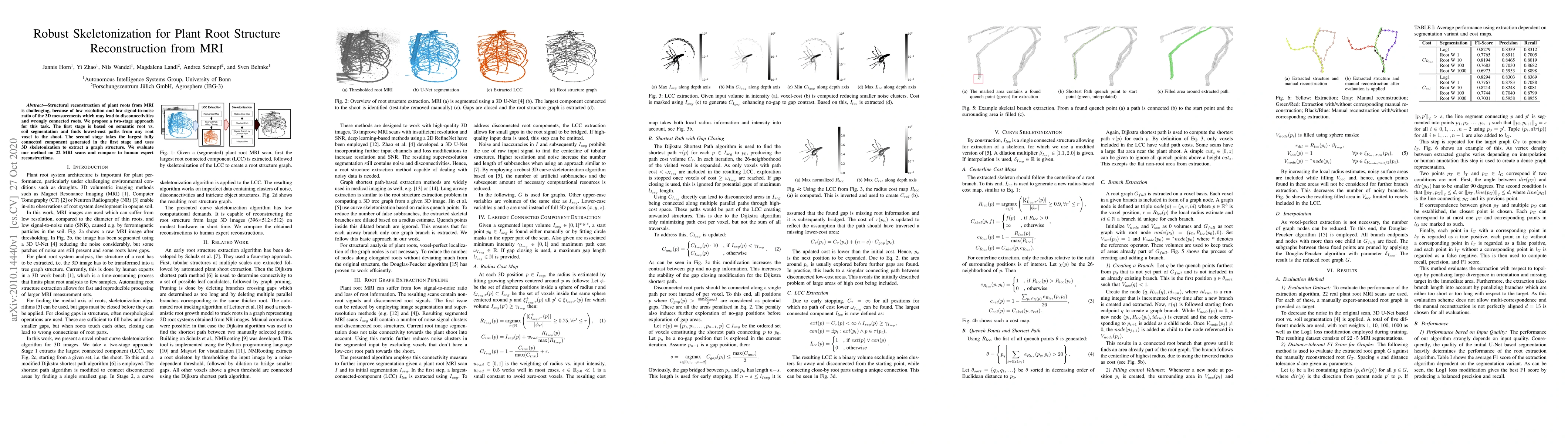 Structural reconstruction of plant roots from MRI is challenging, because of low resolution and low signal-to-noise ratio of the 3D measurements which may lead to disconnectivities and wrongly connected roots. We propose a two-stage approach for this task. The first stage is based on semantic root vs. soil segmentation and finds lowest-cost paths from any root voxel to the shoot. The second stage takes the largest fully connected component generated in the first stage and uses 3D skeletonization to extract a graph structure. We evaluate our method on 22 MRI scans and compare to human expert reconstructions.