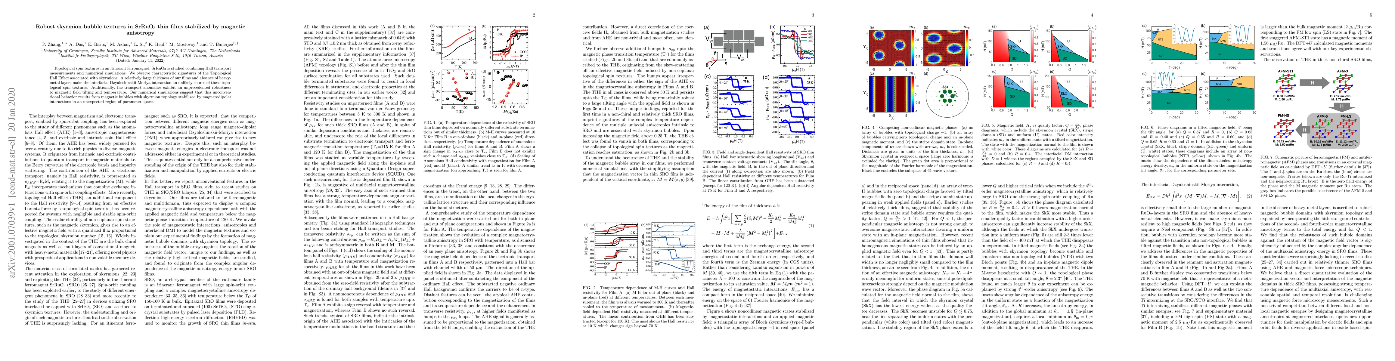 Researchers study topological spin textures in SrRuO$_3$ thin films, discovering skyrmion-bubble textures stabilized by magnetodipolar interactions, which exhibit unprecedented robustness to magnetic field tilting and temperature.